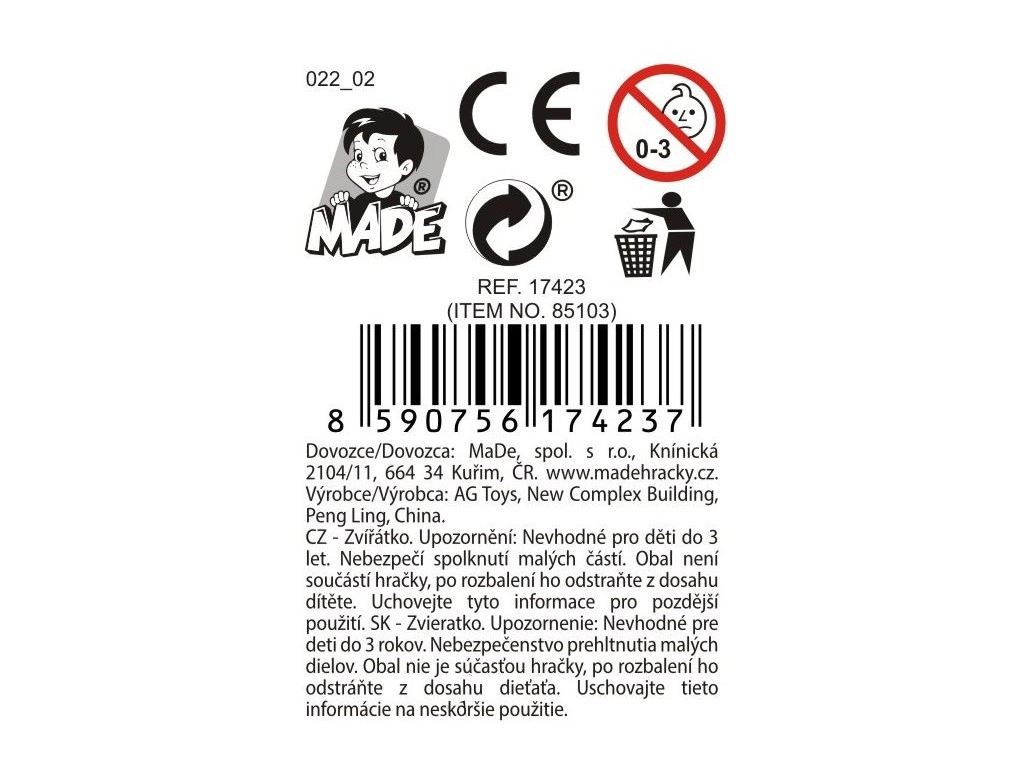 - Rotaļlietas izmērs 15 x 10,3 x 8,2 cm