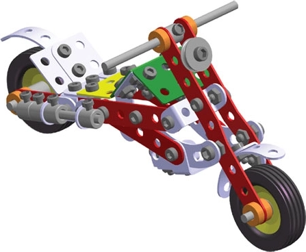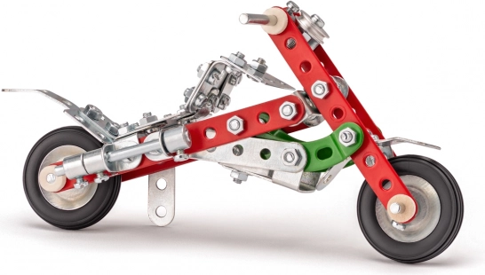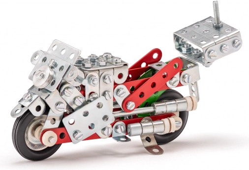 Merkura konstruktors Motocikls piedāvā iespēju salikt desmit atšķirīgus motociklu modeļus un citus transportlīdzekļus. Ar šo komplektu bērni attīsta radošumu, loģisko domāšanu un sīko motoriku. Katrs modelis sniedz jaunu konstruēšanas pieredzi un nodrošina nebeidzamu izklaidi.