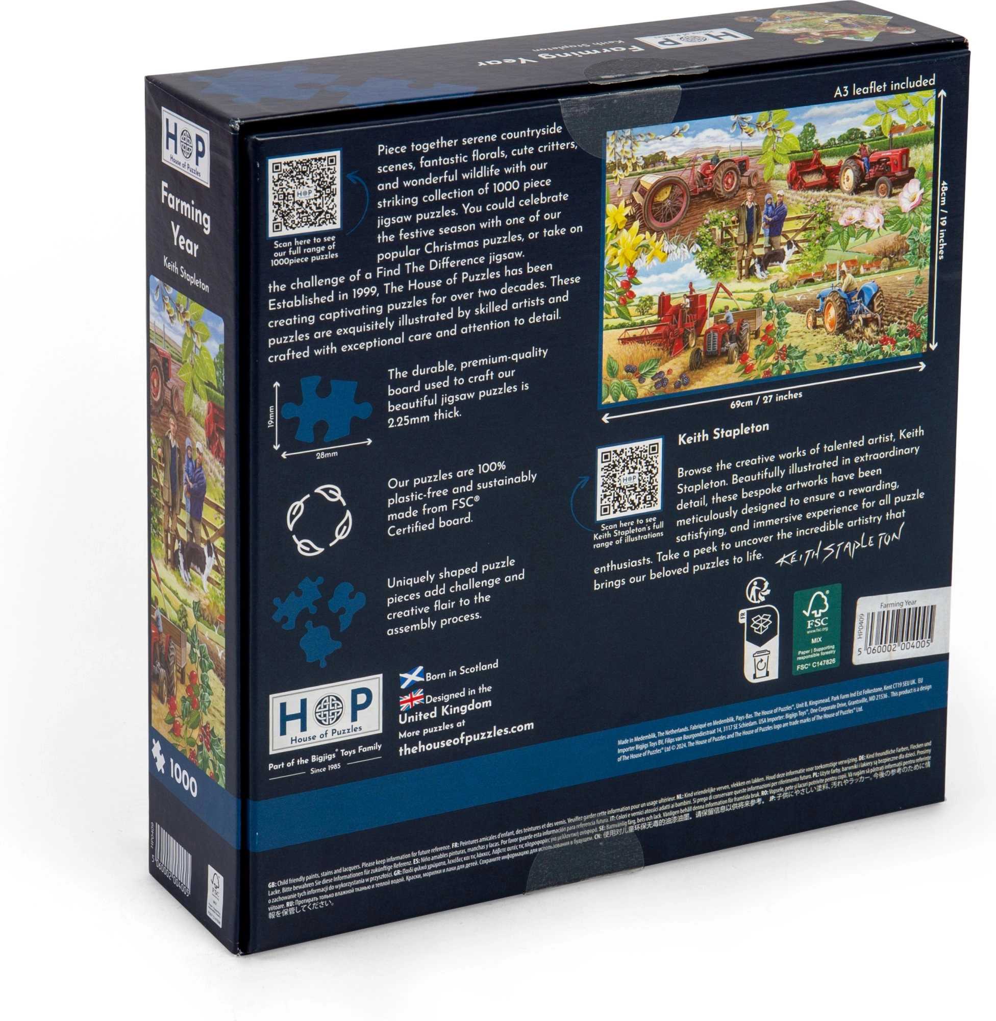 Mīkla Zemnieka gads no zīmola House of Puzzles piedāvā neatkārtojamu pieredzi ar saviem unikāli veidotiem gabaliņiem. Salieciet skaistu attēlu par zemnieka gada ritējumu, kas jūs izklaidēs daudzu stundu garumā.