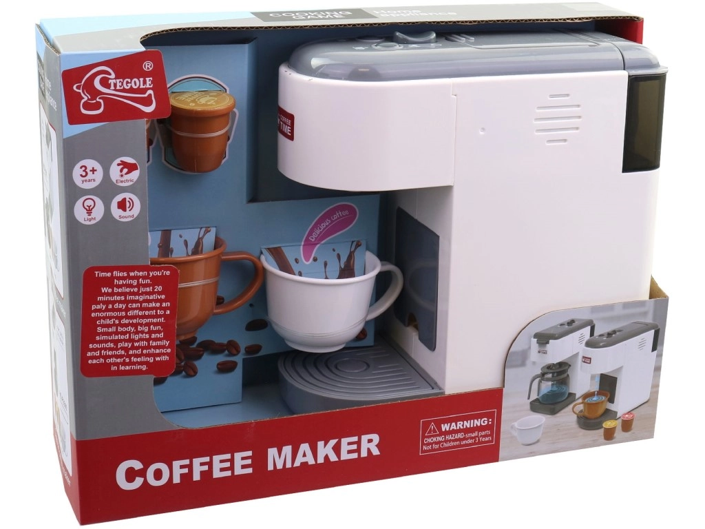 Reālistisks kafijas automāts ir ideāla rotaļlieta bērniem no 3 gadu vecuma. Šis moderns kafijas automāts piešķirs katrai bērnu virtuvei reālistisku izskatu un iepriecinās mazos baristas.