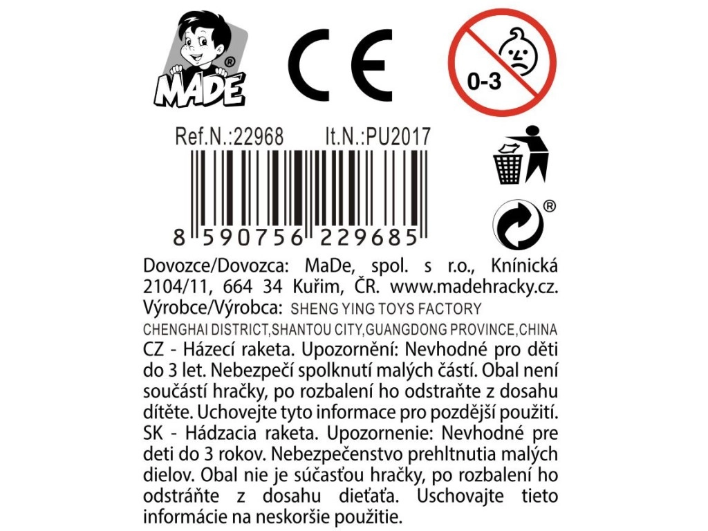 Metošanas raķete ir lieliska rotaļlieta zēniem no 3 gadu vecuma, kas nodrošina aktīvu izklaidi gan ārā, gan telpās bez bateriju nepieciešamības. Raķete izgatavota no kvalitatīvas plastmasas un putām.