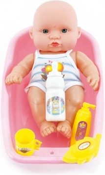 Izbaudiet rūpes par bēbīti ar šo mīlīgo komplektu! Meitenes var apgūt ikdienas rūpes par mazuli ar šo rotaļlietu, kurā ietilpst bērniņš un vanniņa.