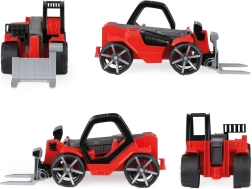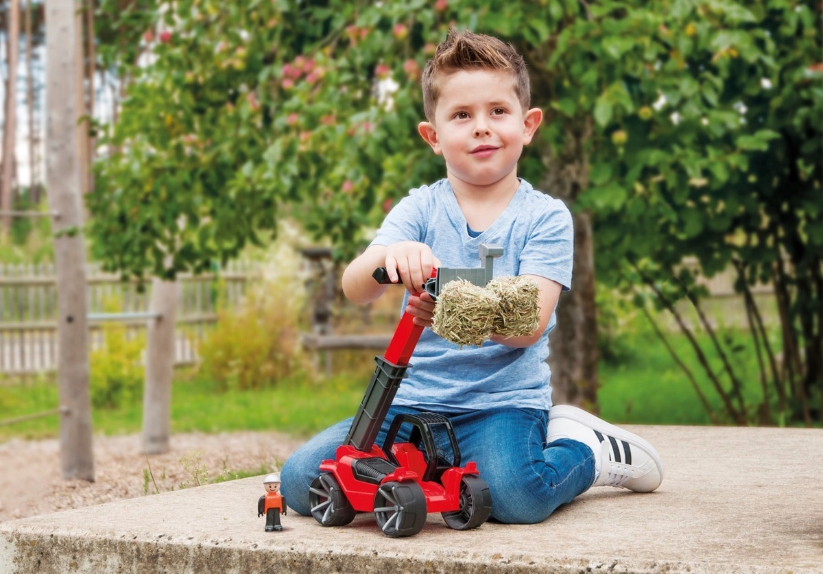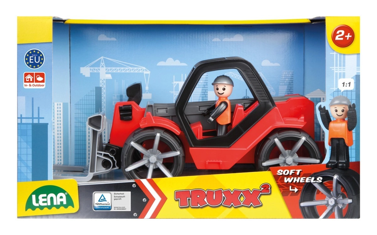 Teleskopiskais iekrāvējs Truxx2 ir izgatavots no augstas kvalitātes plastmasas un tam ir ļoti izturīga konstrukcija. Komplektā ir arī noņemama kabīne ar figūriņu un gumijoti riteņi klusai gaitai.