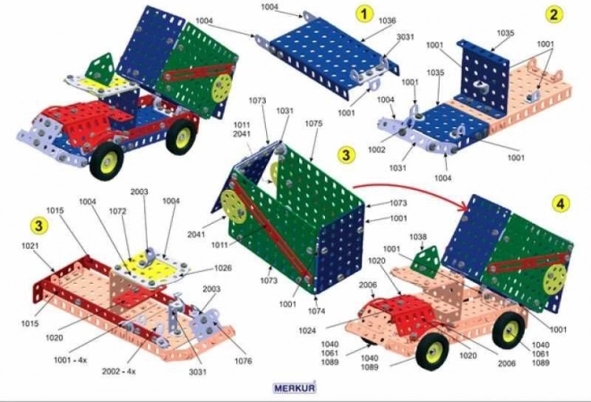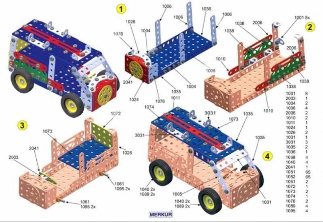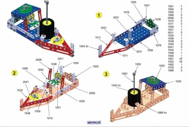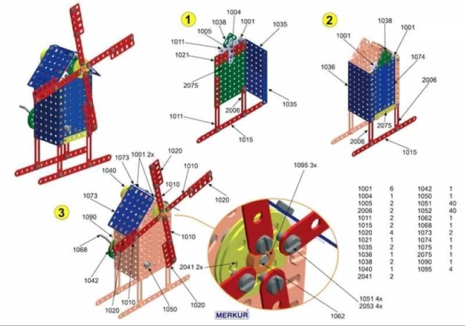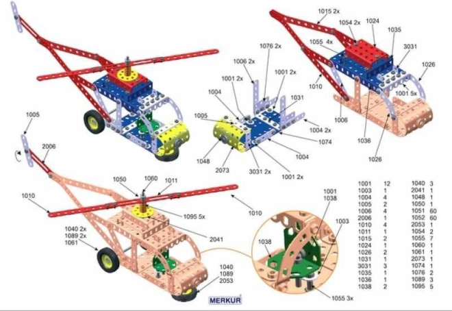 Iepazīstinām ar konstruktoru MERKUR 3, kas ir ideāli piemērots gan jaunajiem inženieriem, gan viņu vecākiem. Šis klasiskais vienas kārtas konstruktors iekļauj 273 detaļas, tostarp līstes, lokus, leņķus, riteņus un riepas. Iepakojumā ir arī skrūves un uzgriežņi, kas nepieciešami plaša modeļu klāsta salikšanai.