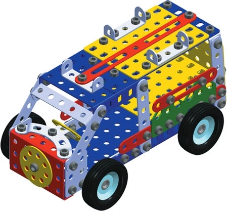Konstruktors ietver instrukciju grāmatiņu, kas soli pa solim ved cauri 30 modeļu būvei, piemēram, lentes zāģim, celtņam, kravas automobilim vai vagonam. Ievada lapās atradīsiet pamatpadomus par detaļu savienošanu, kontruzgriežņu izmantošanu un citām modelēšanai nepieciešamām tehnikām.