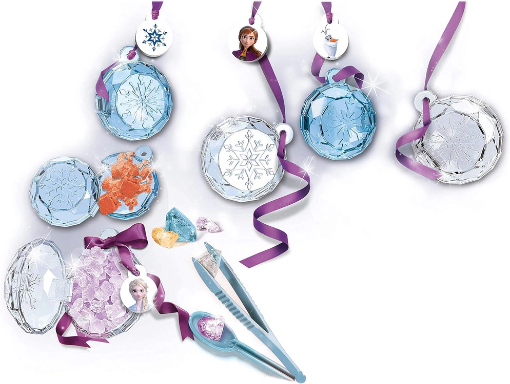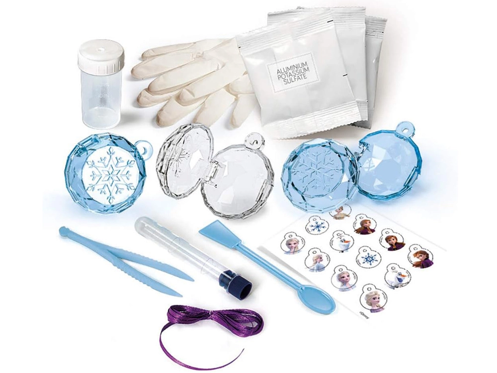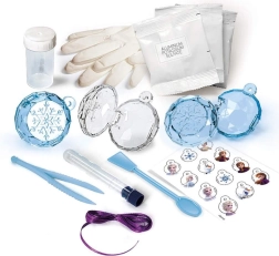 Crystal Jewels Frozen II no Clementoni apvieno eksperimentālu komplektu ar rokdarbu bižutērijas izgatavošanu. Tas ļauj izaudzēt krāsainus kristālus, kurus var ievietot caurspīdīgos medaljonos kā neatkārtojamu rotu. Šis radošais komplekts ir ideāli piemērots drosmīgiem un ziņkārīgiem bērniem, kuri nebaidās paust savu personību. Lielisks veids, kā aizraut un veicināt radošumu!