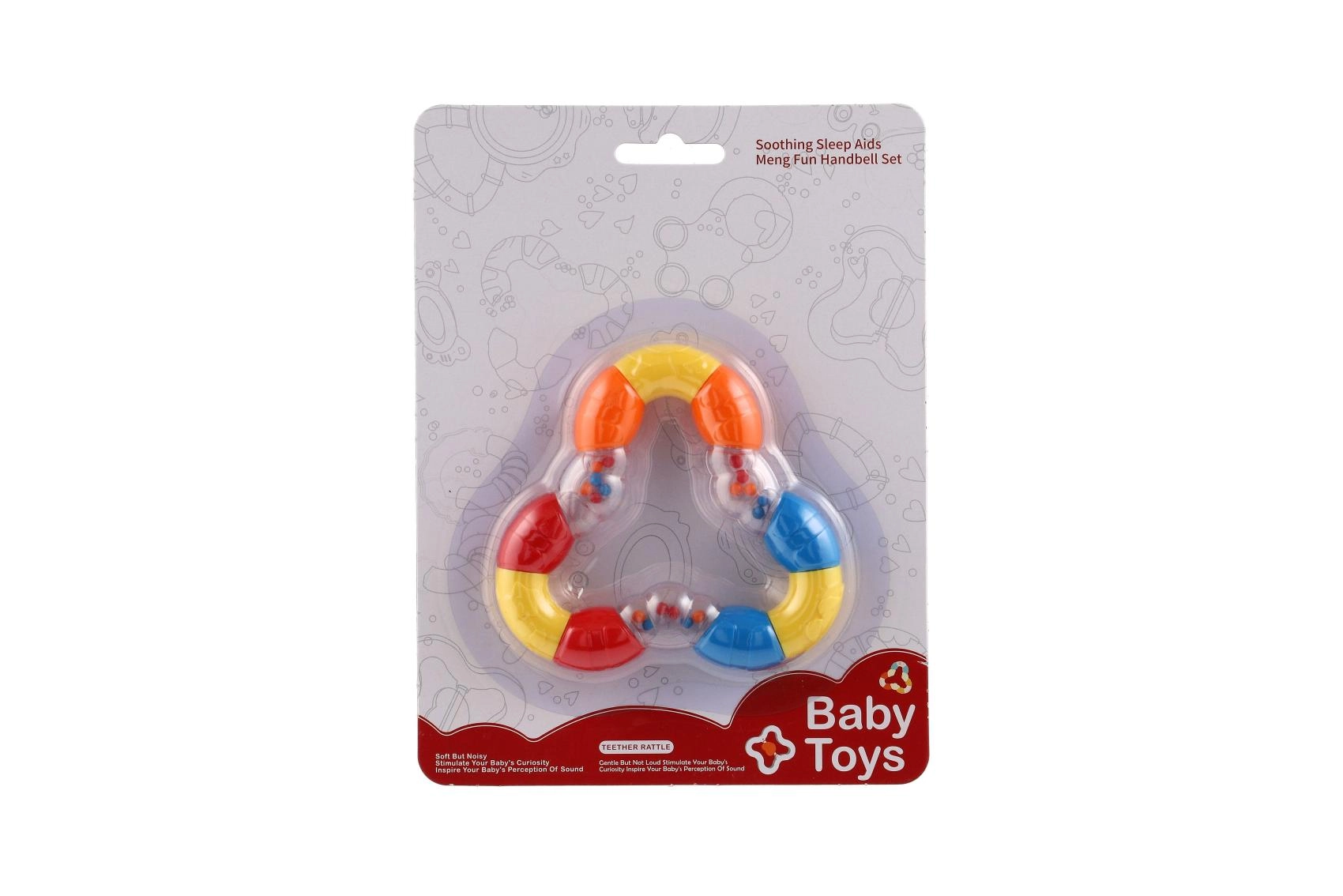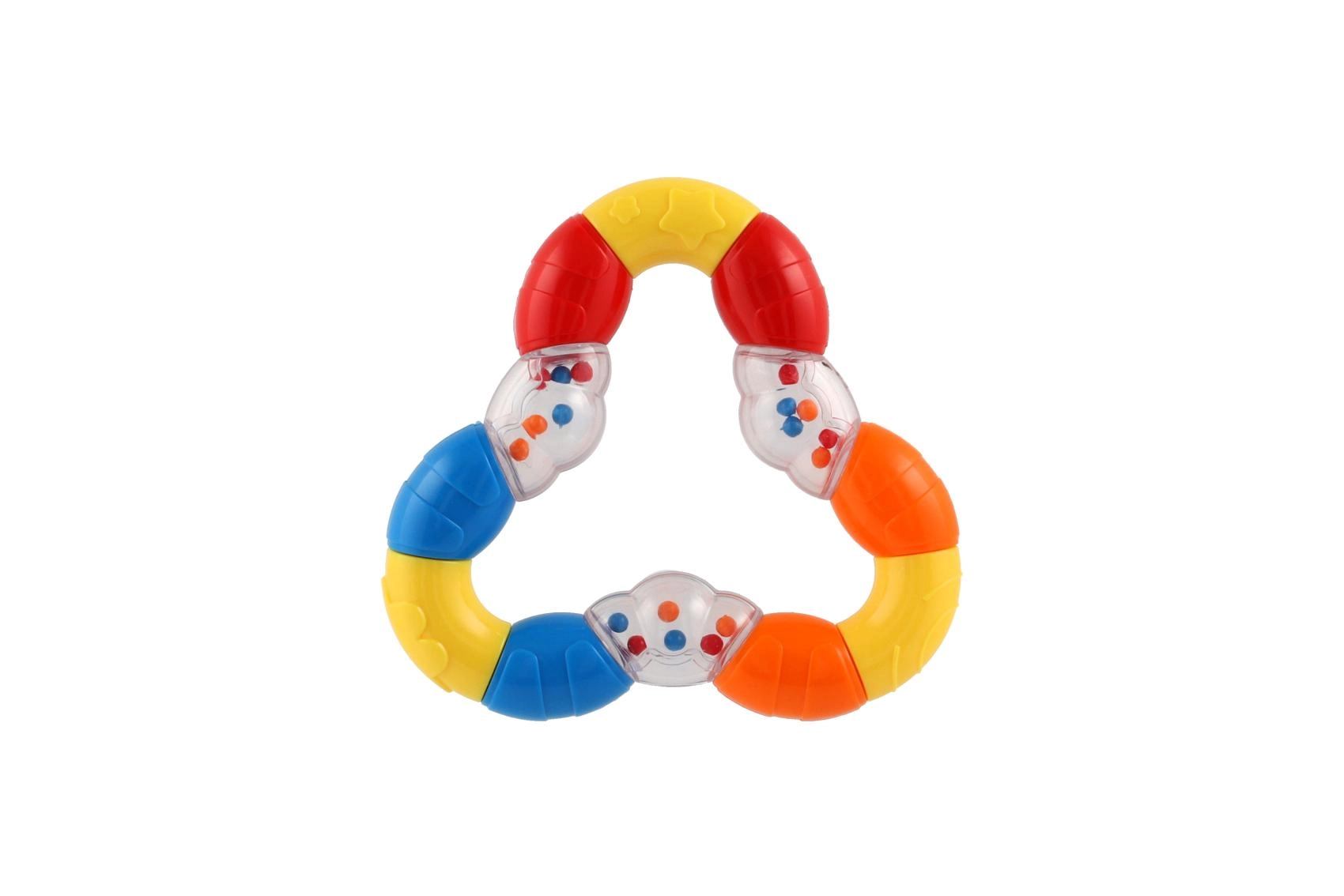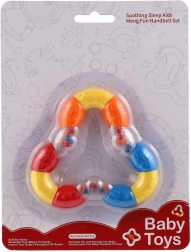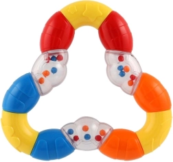 Ļoti viegls trīsstūra formas grabulis ir ideāli piemērots mazuļu pirmajām rotaļām. Elastīga plastmasa ir patīkama pieskārienam, viegli satverama un vienlaikus kalpo arī kā košļājamā rotaļlieta.