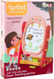 Komplektā: divpusēja magnētiskā tāfele, krāsaini krīti, sausās tīrīšanas flomāsteri, magnēti ar burtiem un cipariem, lineāls – spirogrāfs, dzēšamā sūklis, plaukts un piederumu turētājs, izglītojošu galda spēļu komplekts, montāžas instrukcija.