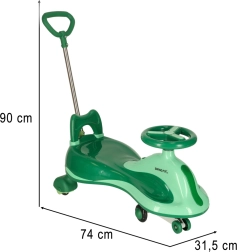 Jūsu bērni izbaudīs klusos gumijas riteņus, turklāt viņus sajūsminās spīdošie LED riteņi divās krāsās – sarkanā un zaļā. Tas viss veicina priecīgus braucienus mājās vai ārā.
