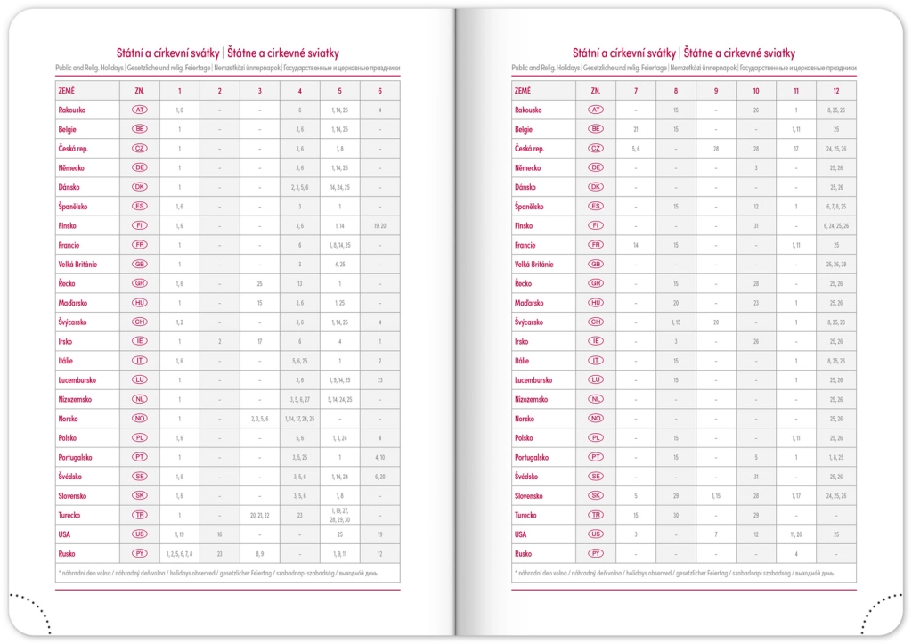 - Svētku saraksts Čehijā un Slovākijā, tostarp starptautiskās svētku dienas