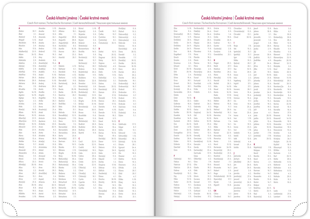 - Čehu–slovāku kalendārijs, papildus angļu, vācu, ungāru un krievu valoda