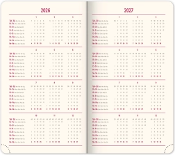Elegants kabatas plānotājs Panama 2026 no zīmola Notique pieejams brūnā krāsā. Tā virsma izceļas ar smalku tekstūru, ideāli piemērota dažādiem iespiedumiem. Papildus nedēļas izkārtojumam tajā ir čehu-slovāku kalendārijs ar papildinājumiem angļu, vācu, ungāru un krievu valodā.