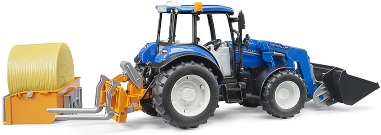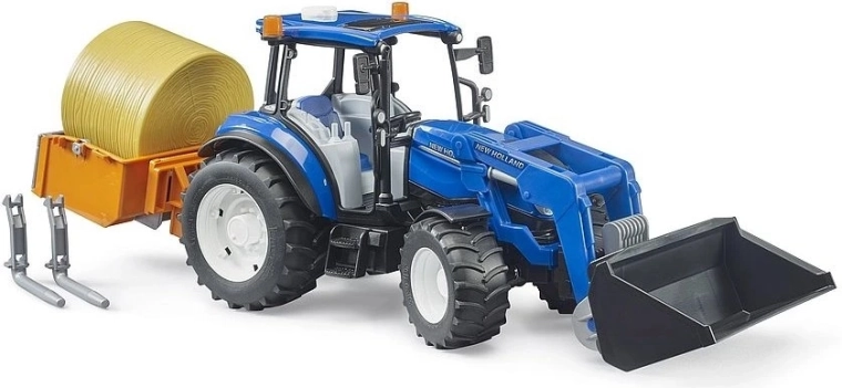 Traktors BRUDER NEW HOLLAND T5.120 ir daudzpusīgs palīgs saimniecībā ar precīzu izpildījumu un izturīgu konstrukciju. Pateicoties funkcionējošam frontālajam iekrāvējam, papildu dakšām un kravas kastei, bērni viegli iekraus, pārvadās un izkraus siena rullīšus vai citus materiālus. Atsperotās asis un bezceļu priekšējā ass nodrošina stabilu braucienu arī ārpus gludas virsmas.