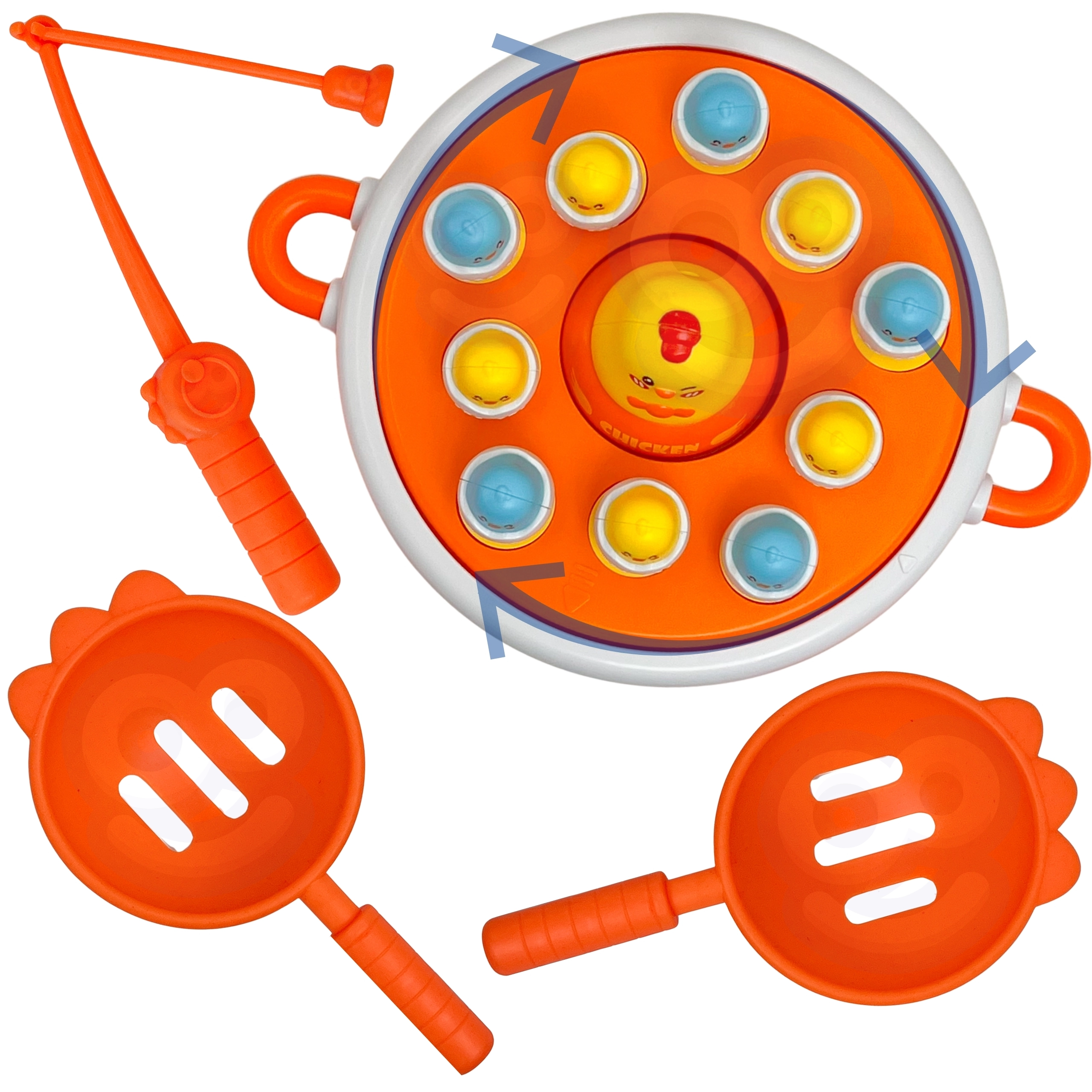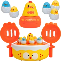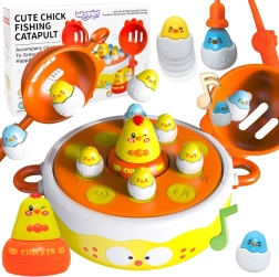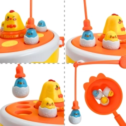 Šī universālā rotaļlieta apvieno līdz četrām spēlēm vienā komplektā, tāpēc izklaide nebeidzas tik drīz. Rotējošā bāze ar mūziku nejauši paceļ cālīšus, kurus var ķert ar magnētisko makšķeri vai notvert ar lāpstiņām pēc izšaušanas no katapulta. Lielākais noņemamais cālis kalpo kā rotaļu mašīnīte.