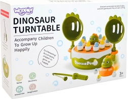 - Divpusēja rotējoša platforma ar rokturiem, dino figūriņas “oliņās”, 1× magnētiskā makšķere, 2× lāpstiņa, dino–automašīnīte, dāvanu iesaiņojums