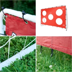 Precizitātes tīklā ir dažādi mērķa atvērumi, kas apzīmēti ar punktiem, lai attīstītu sitiena tehniku un veicinātu sportisku sacensību. Nepalaidiet garām iespēju ienest futbola atmosfēru savā dārzā ar bērniem atbilstošiem izmēriem un izturību pret laikapstākļiem.