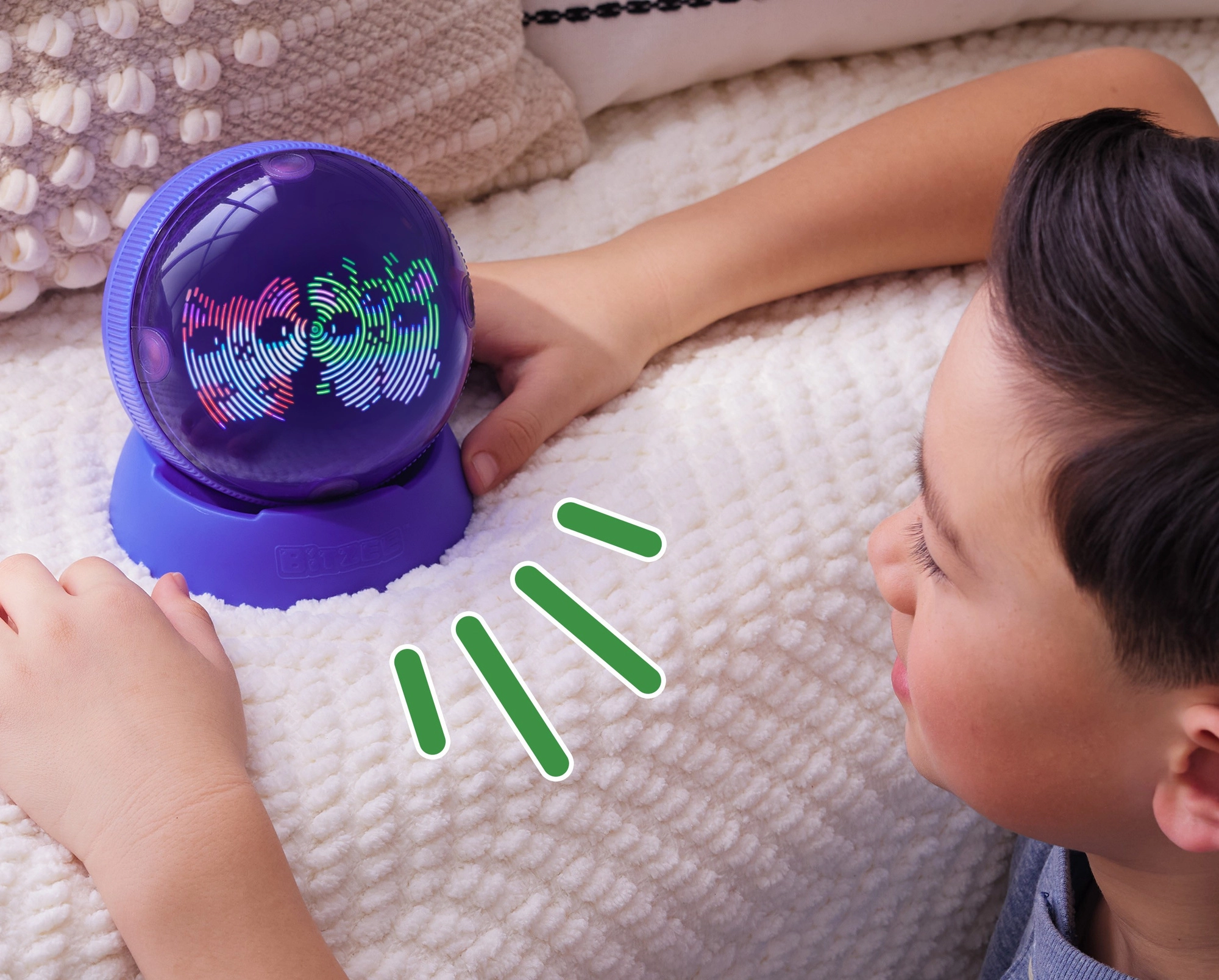 Atklājiet jaunu digitālā mīluļa koncepciju: BITZEE Hamster Ball apvieno taustes mijiedarbību ar aizraujošiem gaismas efektiem un mīlīgām reakcijām. Jūs varat barot, glāstīt, mazgāt kāmi un izklaidēt to skriešanas ritenī – vērojot, kā tas aug no mazulīša līdz pieaugušam varonim un pārtop par Super Bitzee. Rotaļlieta darbojas bez displeja, tāpēc tā veicina radošumu un sīko motoriku.