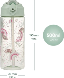 Atklājiet praktisku un drošu tritāna dzeramo pudeli ar 500 ml tilpumu. Pudelei ir integrēts mīksts salmiņš un atlokāma iemute ērtai dzeršanai. Ar svaru tikai 135 g tā ir viegla un ērti pārnēsājama. Izgatavota no veselībai nekaitīga materiāla – tritāna, kas padara to par drošu izvēli ikdienas lietošanai.