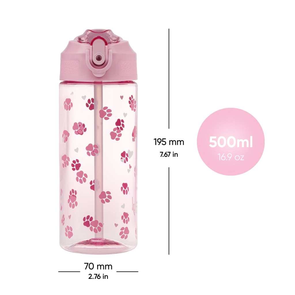 Ķepu nospiedumu dizains un drošs 500 ml tilpums padara šo pudeli par lielisku dāvanu bērniem.