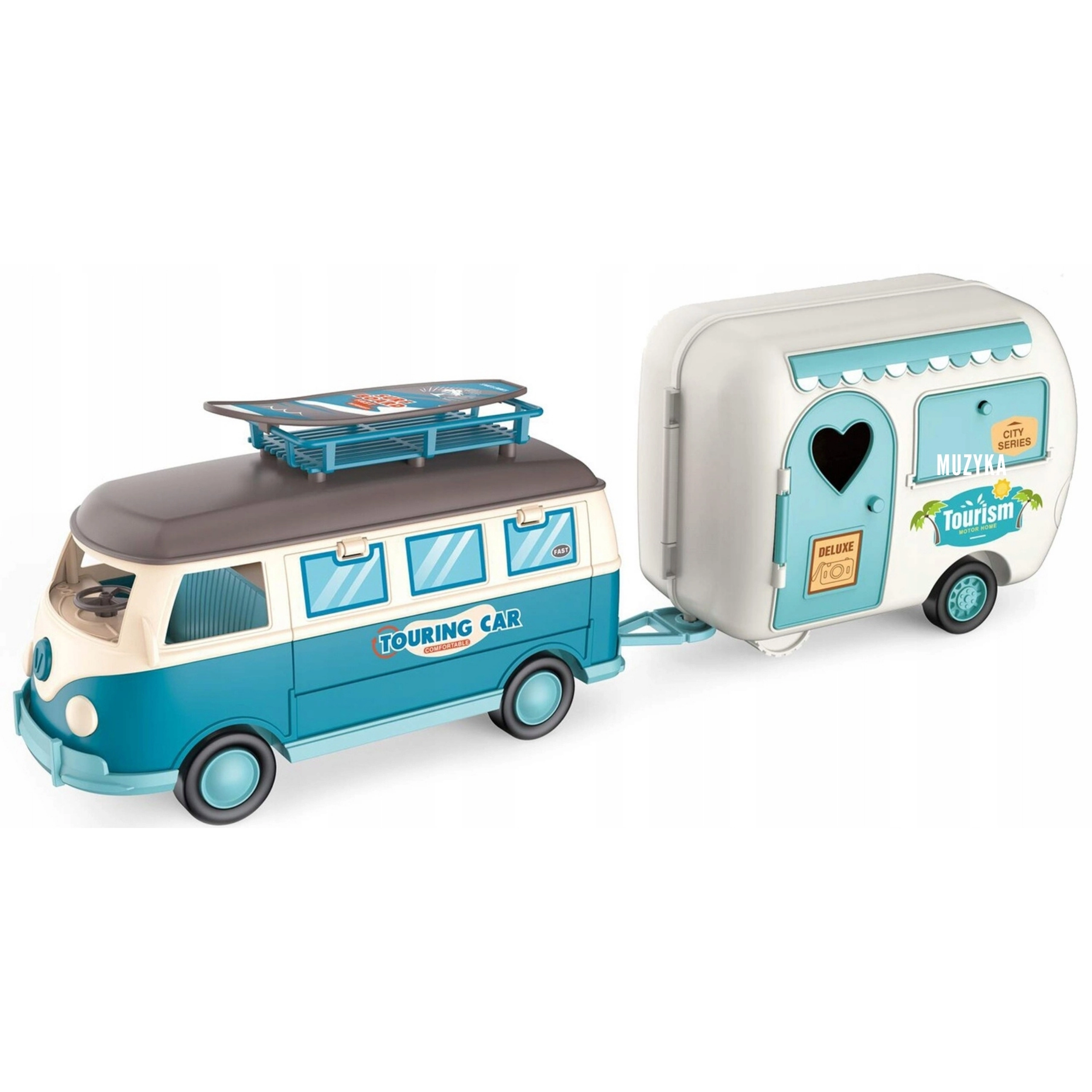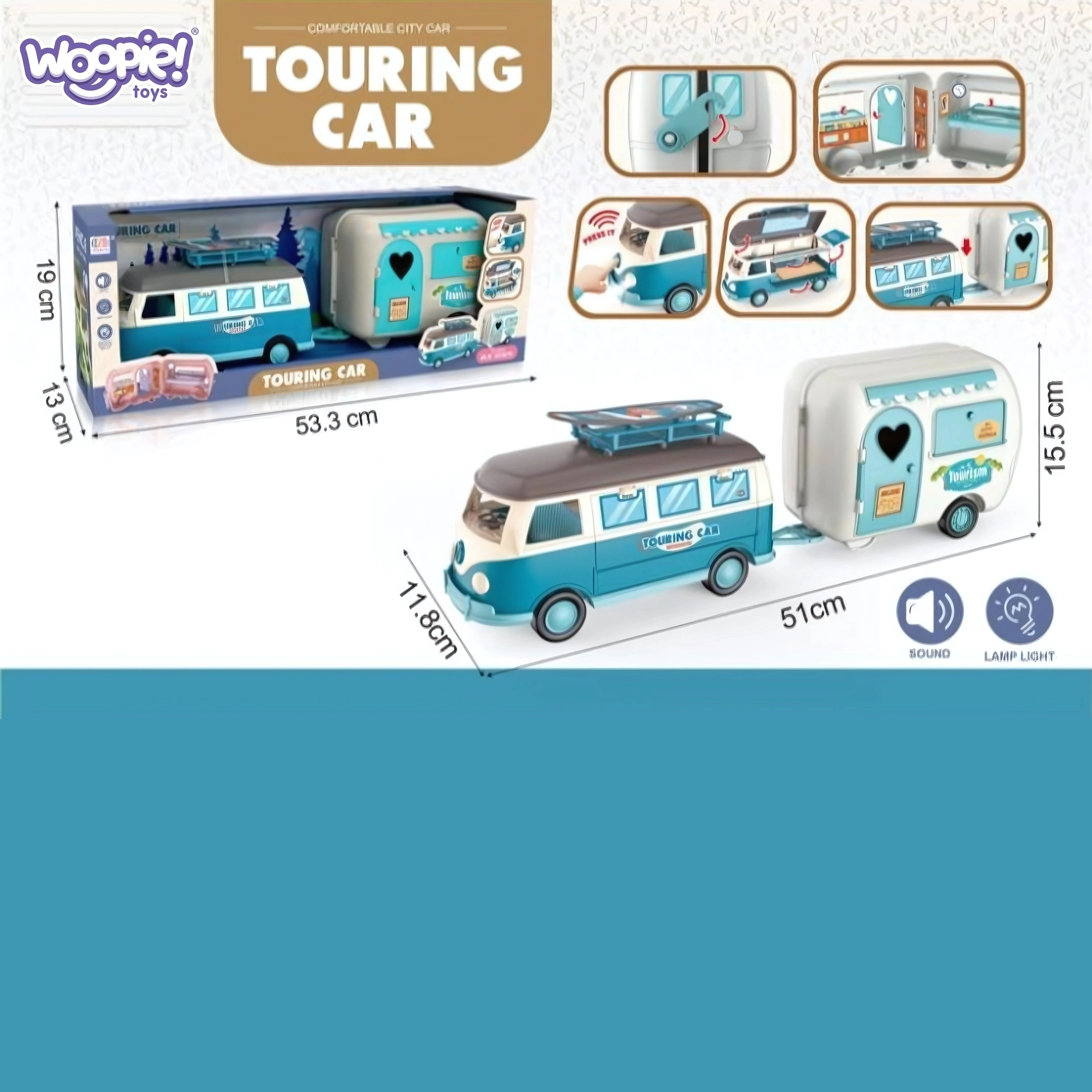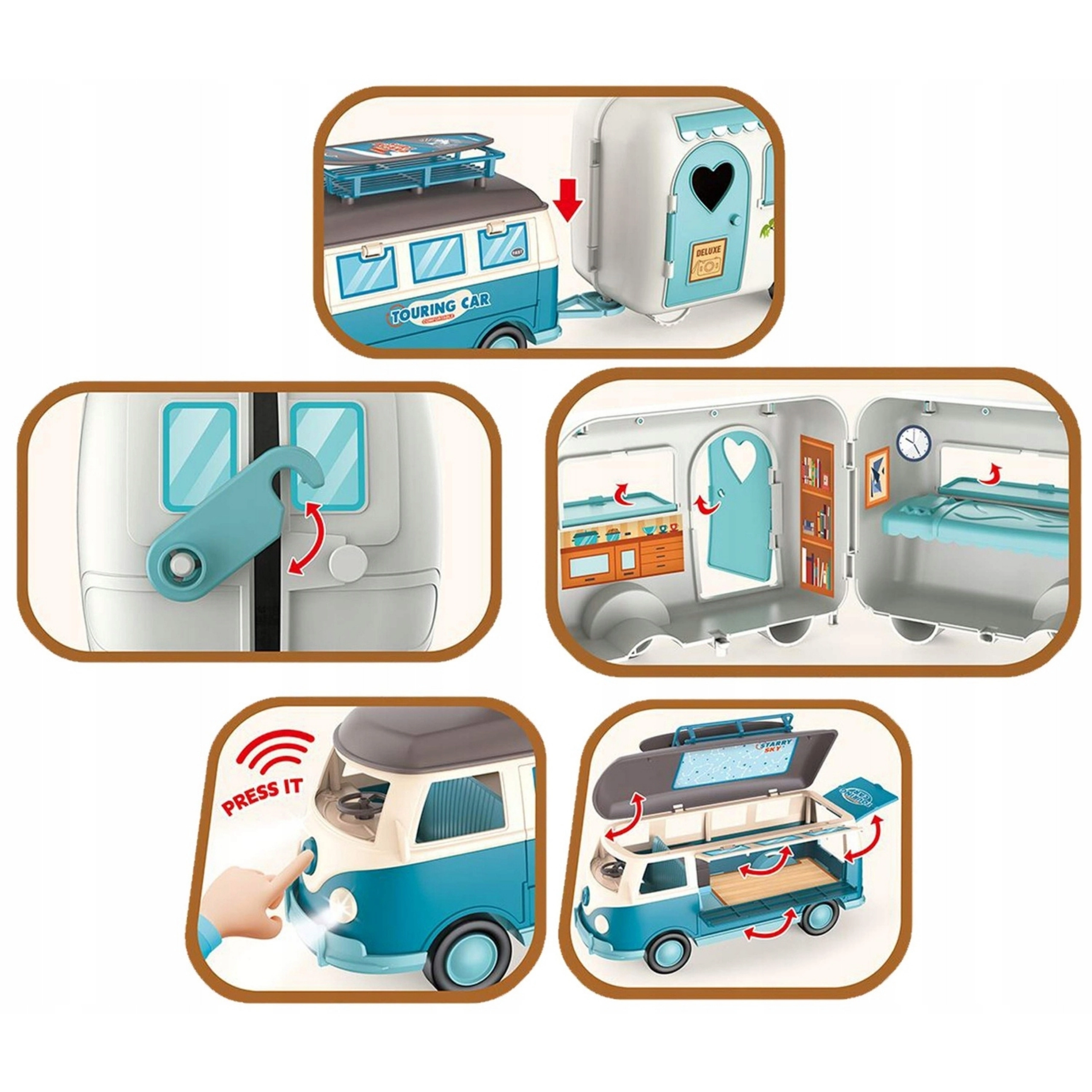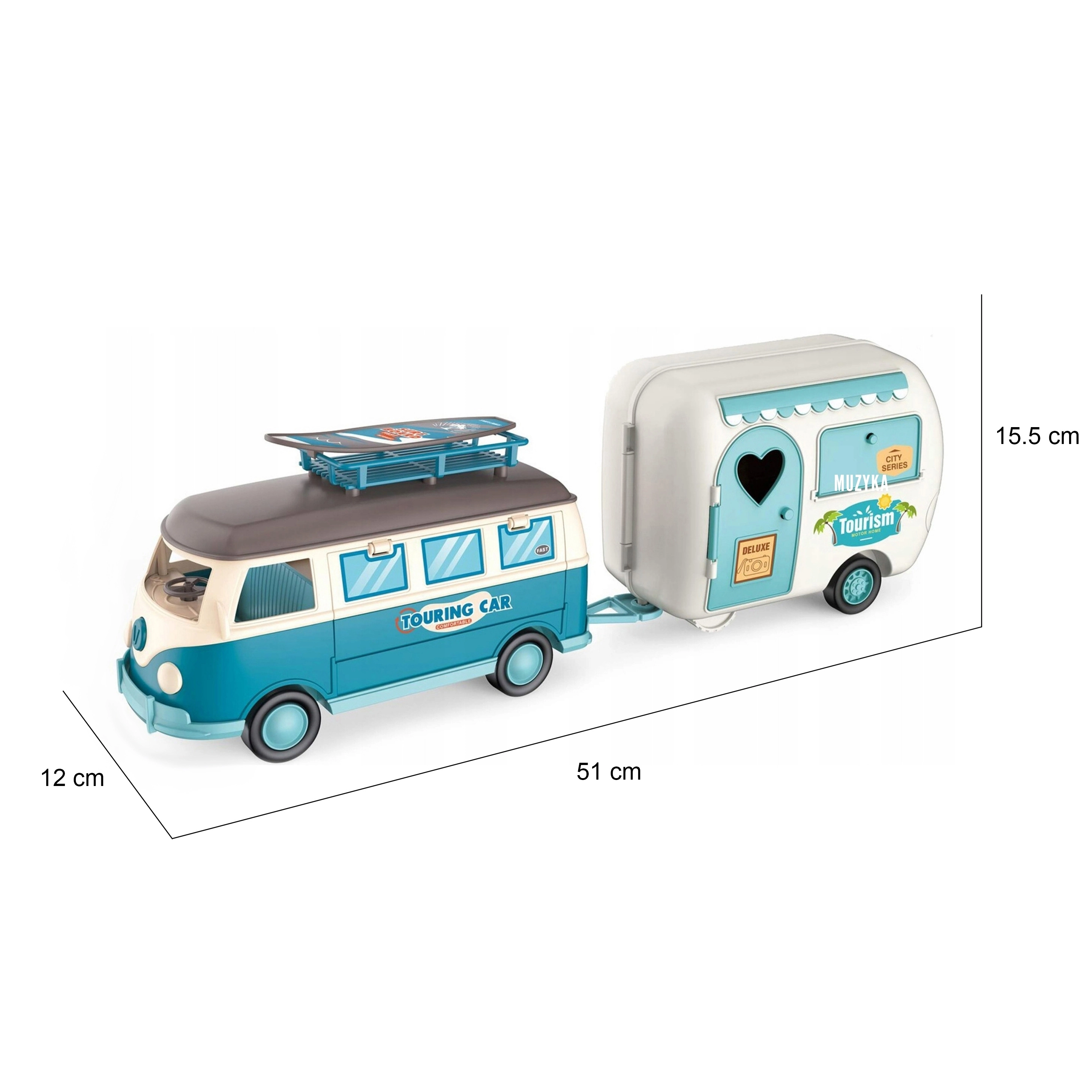 Atklājiet pārsteidzošu piedzīvojumu pasauli ar izcilu karavānu ar piekabi no zīmola Woopie! Šī košā retro stila rotaļlieta ir ideāla mazajiem pētniekiem, kuri mīl radošas spēles. Karavānai ar piekabi ir atverami elementi, reālistisks interjers un gaismas un skaņas efekti, kas padarīs katru ceļojumu neaizmirstamu.