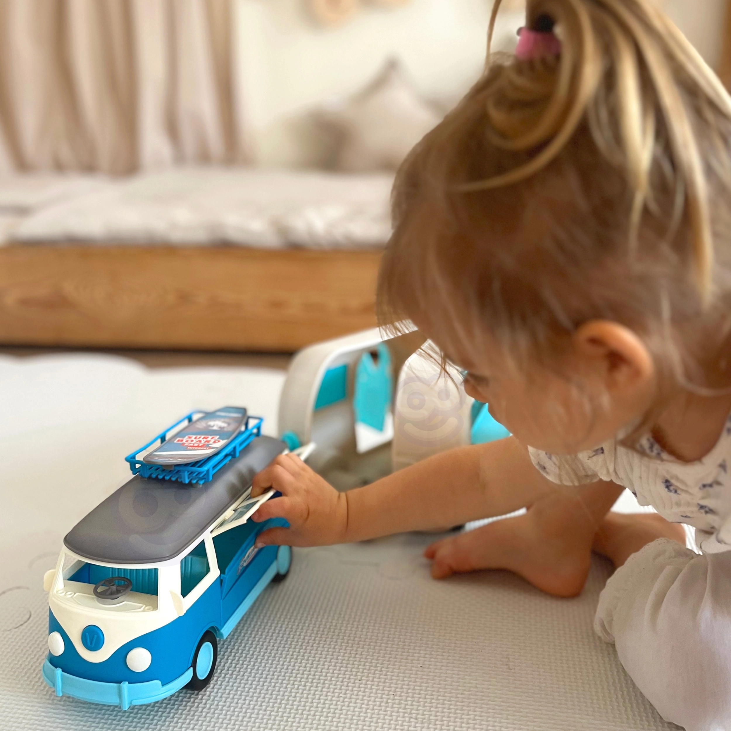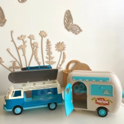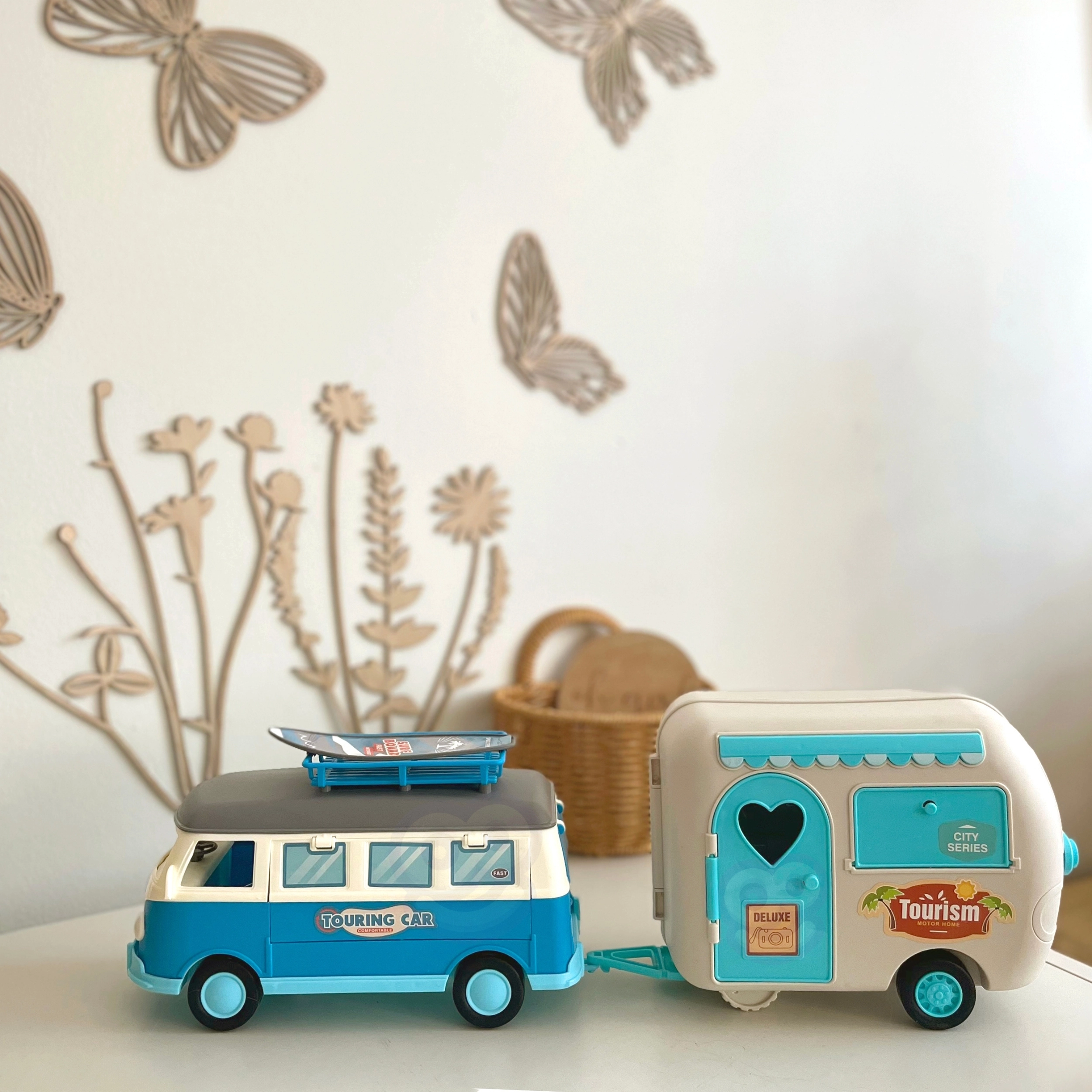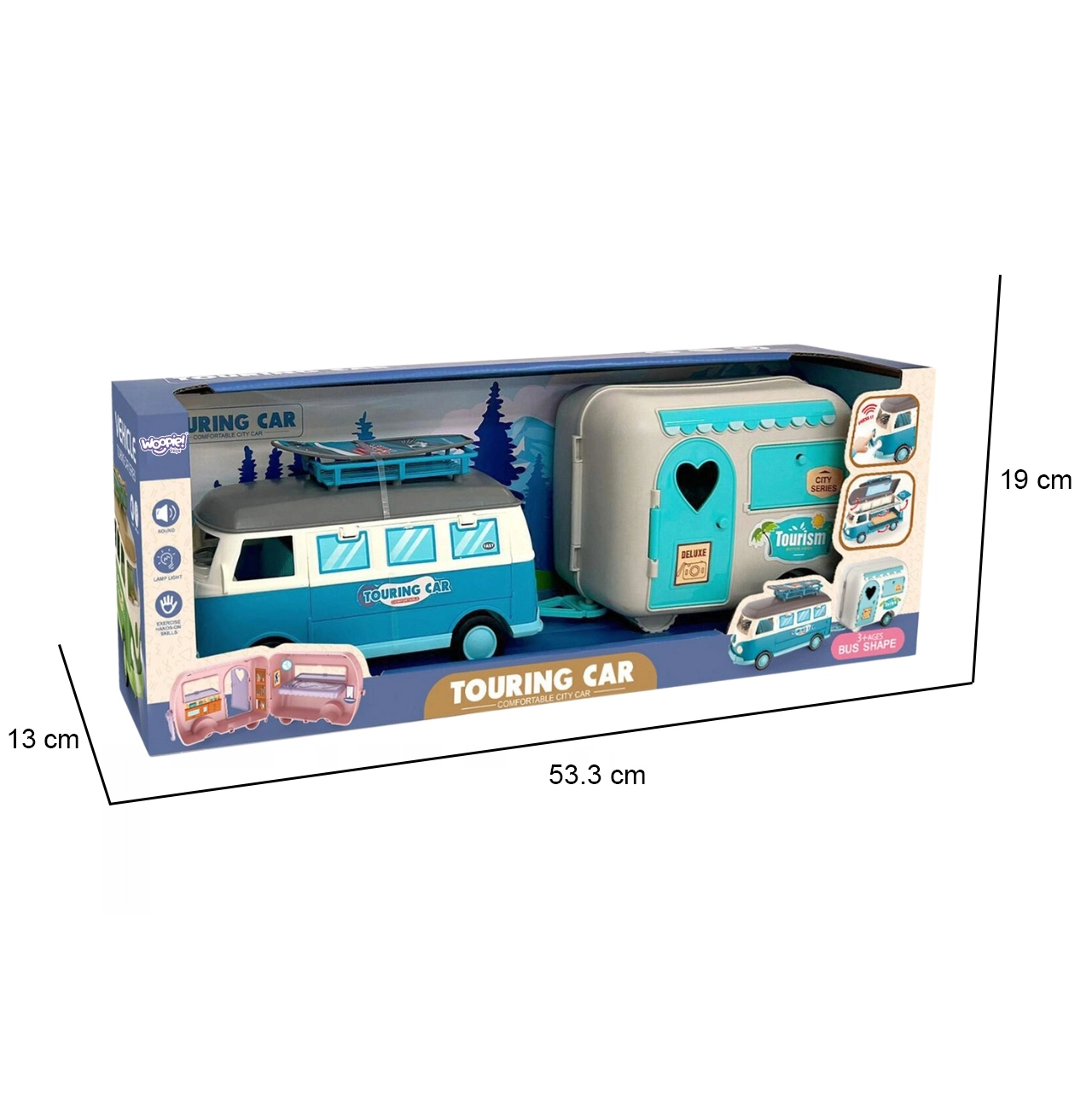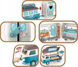 Atklājiet pārsteidzošu piedzīvojumu pasauli ar izcilu karavānu ar piekabi no zīmola Woopie! Šī košā retro stila rotaļlieta ir ideāla mazajiem pētniekiem, kuri mīl radošas spēles. Karavānai ar piekabi ir atverami elementi, reālistisks interjers un gaismas un skaņas efekti, kas padarīs katru ceļojumu neaizmirstamu.
