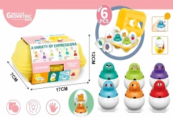 Katrai olai apakšā ir unikāla ģeometriska forma, kas ieguļ atbilstošajā atverē kastītē. Jautrās sejiņas lieliski palīdz bērniem atpazīt un nosaukt emocijas. Bērni viegli un patīkami apgūst, kā izskatās dažādas izjūtas un ko tās nozīmē. Šī rotaļlieta piedāvā lielisku loģiskās domāšanas un koordinācijas treniņu!