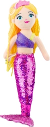 Pūkainajai nāriņai ir gari, dzelteni cirtaini mati un rozā kronis. Violets mirdzošs tops piešķir estētisku un pasakainu tēlu, kas ir ideāls ne tikai kā rotaļlieta, bet arī kā dekorācija bērnu istabai.