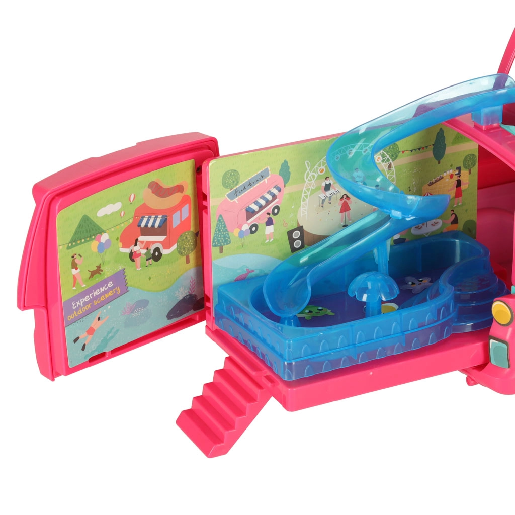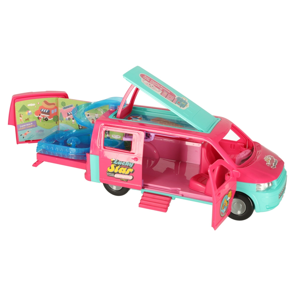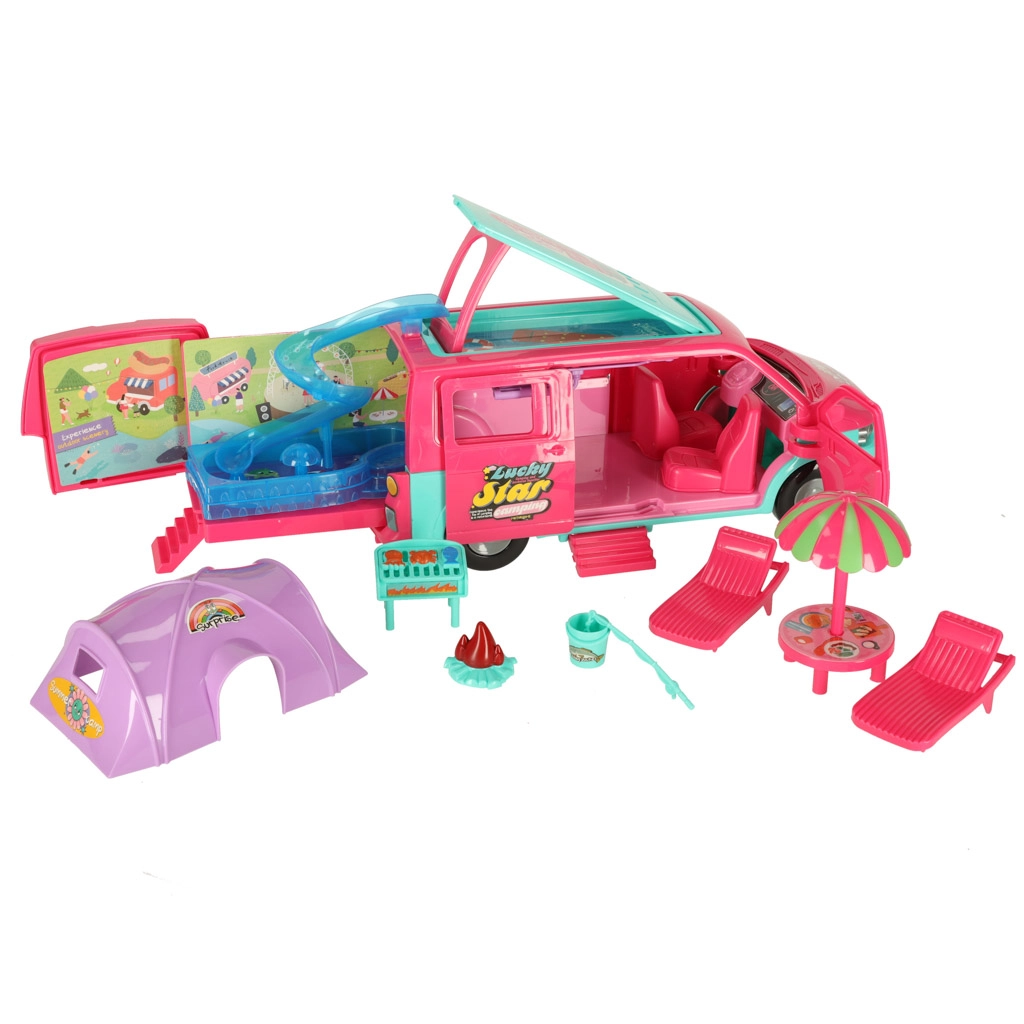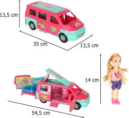 Dodieties lieliskos piedzīvojumos ar lellēm un kempinga karavānu, kas nodrošina ideālu vidi jautrām spēlēm. Komplektā iekļauts viss nepieciešamais atpūtai un rotaļām pludmalē vai dabā: