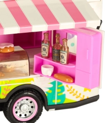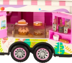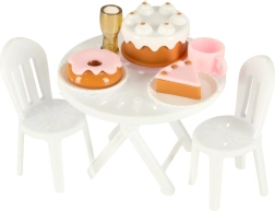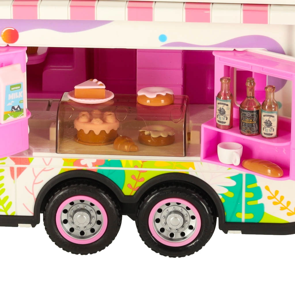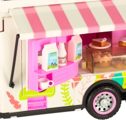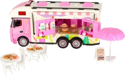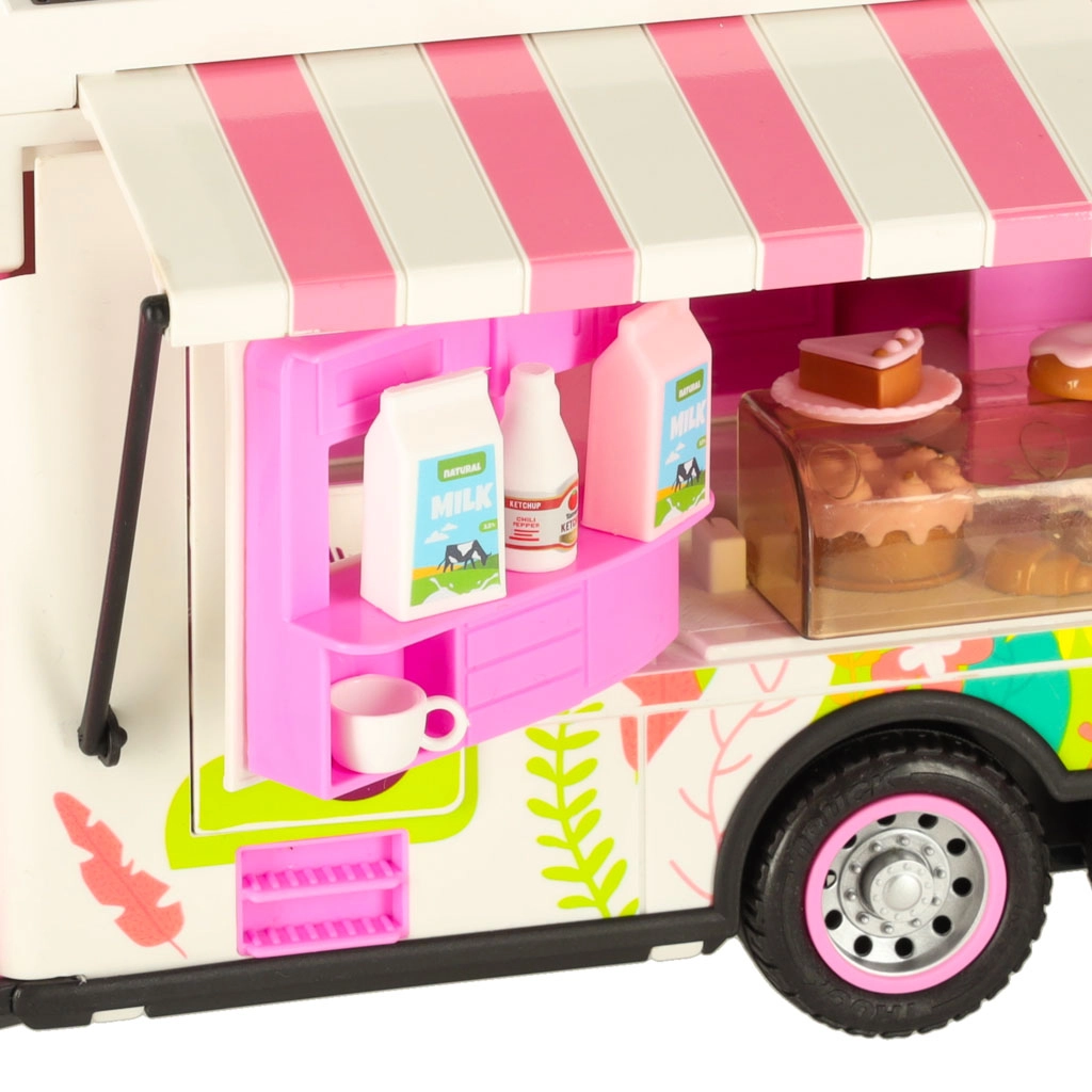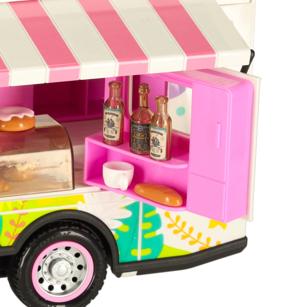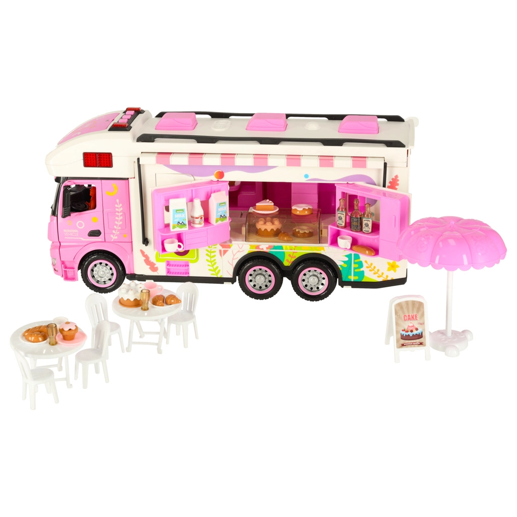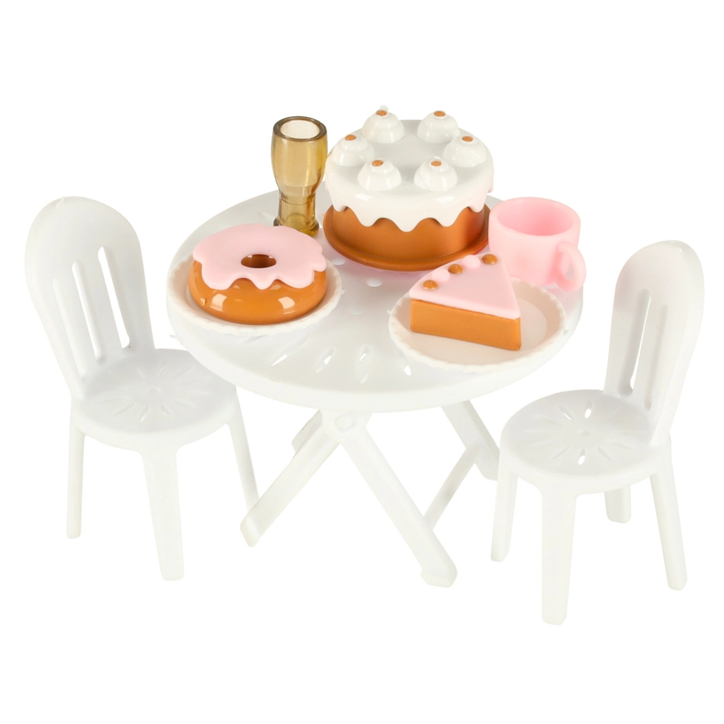 Komplektā ir dažādi piederumi, kas ļauj bērniem simulēt īstu kempingu. To vidū ir galds, krēsli, mini trauki un uzlīmes, kas piešķir personisku pieskārienu. Bērni var arī uzstādīt reklāmas baneri un dārza saulessargu, nodrošinot vēl vairāk rotaļu iespēju.