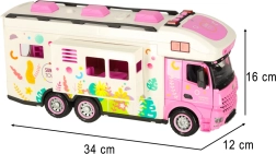 Atklājiet kempinga pasauli ar šo interaktīvo karavānu, kas ir ideāls pavadonis mazajiem piedzīvojumu meklētājiem. Bērni ar tālvadības pulti var vadīt karavānu uz priekšu, atpakaļ, pa kreisi un pa labi, piedzīvojot reālistisku vadību. Karavāna ir aprīkota arī ar gaismām un skaņām, kas piešķir vēl vairāk jautrības. Rotaļlieta ir piemērota bērniem no 3 gadu vecuma.