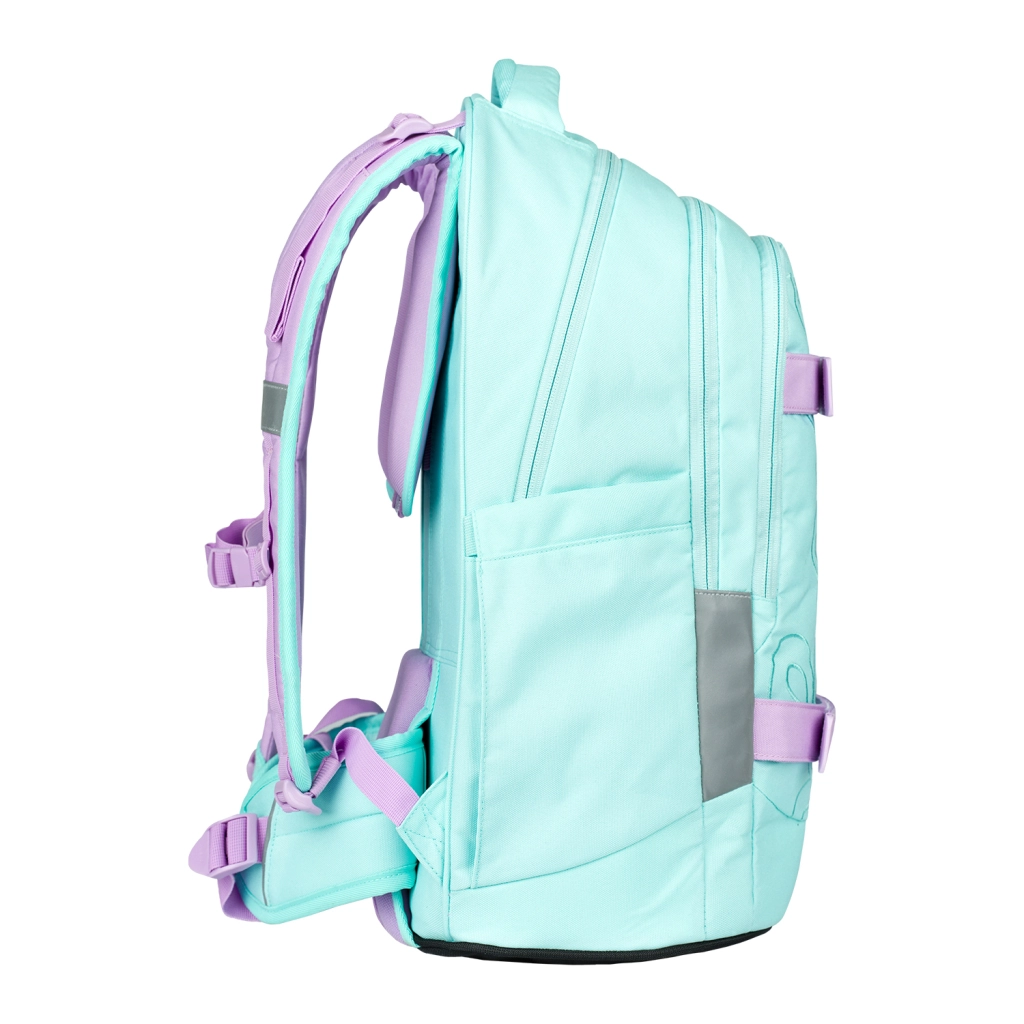 Komplekts BAAGL Skate Max Sweet piedāvā perfektu dizaina un funkcionalitātes apvienojumu. Vieglā mugursoma ar svaru 1150 g ir aprīkota ar bīdāmu muguras sistēmu, kas ļauj regulēt līdz četrām izmēru pozīcijām, ideāli piemērota lietotājiem no 155 līdz 185 cm. Mugursoma ir izgatavota no pārstrādātiem ūdensnecaurlaidīgiem materiāliem ar atstarojošiem elementiem, kas nodrošina bērna drošību arī sliktas redzamības apstākļos.