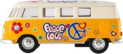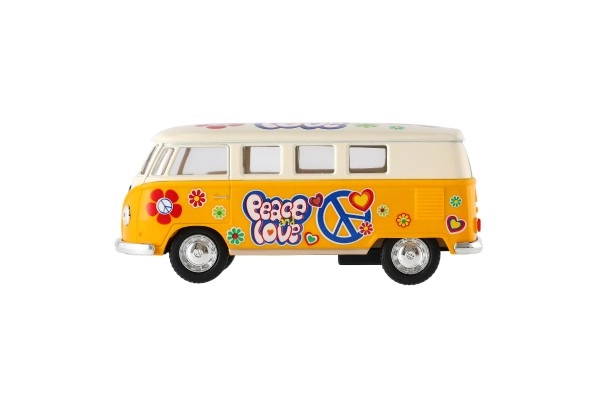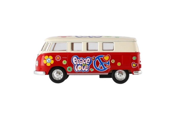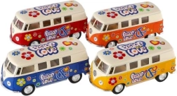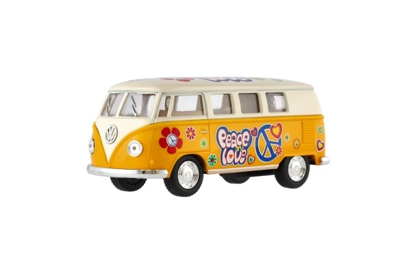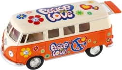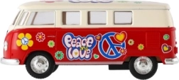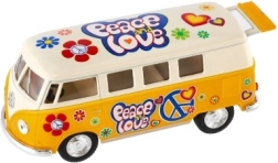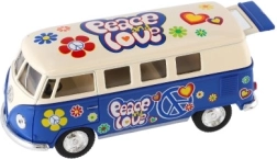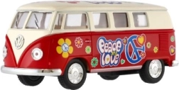 Metāla Volkswagen autobusa modelis, kas ar savu retro dizainu un atvilkšanas mehānismu ienes nostalģiju un prieku. Pieejams četrās krāsu versijās.