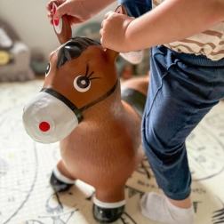 Lēkāšana uz zirgiņa dabiski stiprina ķermeņa vidusdaļu, kustību koordināciju un stabilitātes sajūtu – rotaļīgi un ik dienu.