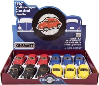 Stilīgs un uzticams leģendārā VOLKSWAGEN Beetle automobiļa modelis no zīmola KINSMART iepriecinās gan bērnus, gan kolekcionārus. Pateicoties metāla virsbūvei un atpakaļejošajai piedziņai, mašīnīte pēc atlaišanas strauji izbrauc. Kompakts garums 13 cm, 4 krāsu varianti un kvalitatīvs izpildījums no metāla un plastmasas. Piemērots no 3 gadiem.