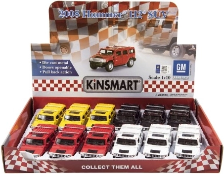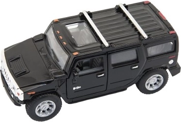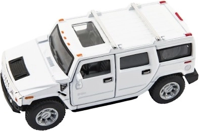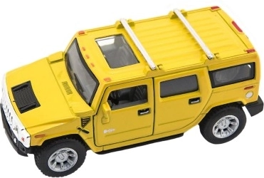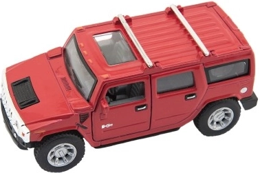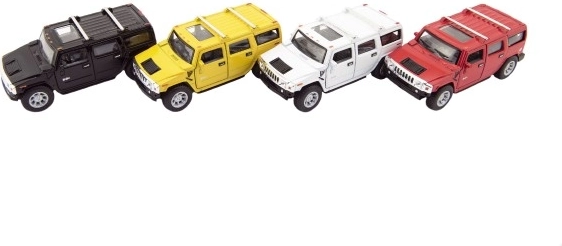 Stilīgs apvidus auto Hummer H2 modelis no zīmola Kinsmart iepriecinās gan bērnus, gan kolekcionārus. Apvieno metāla un plastmasas detaļas, ir atvilkšanas piedziņa, bieži arī atveramas durvis un 12 cm garums. Pieejams 4 krāsu variantos un piemērots no 3 gadu vecuma.