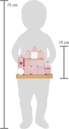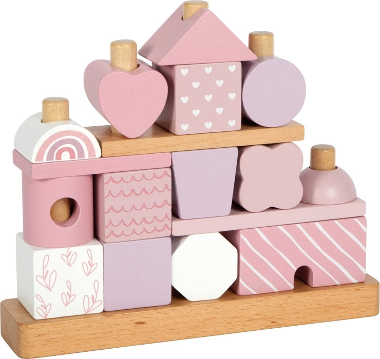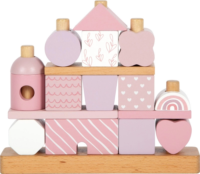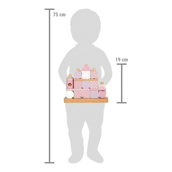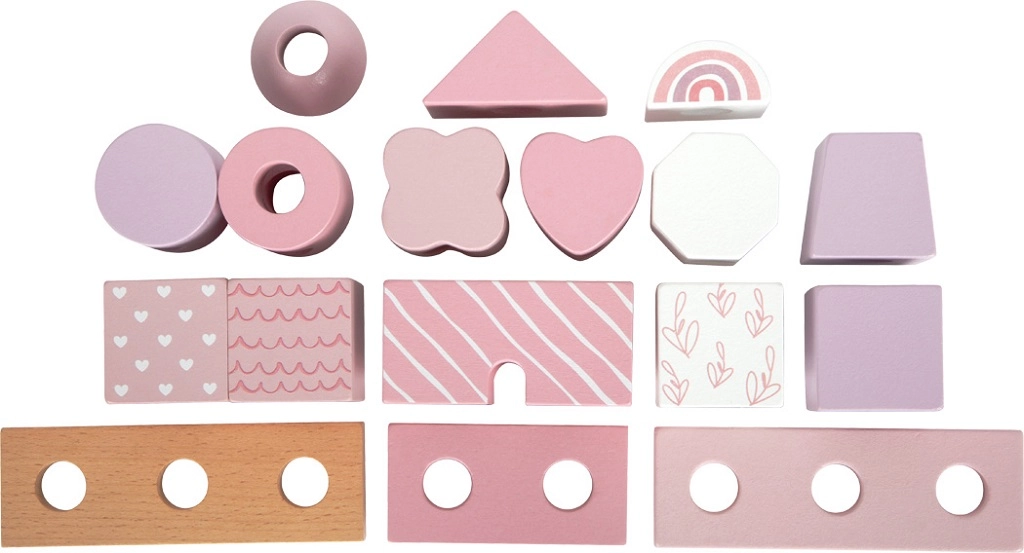 Šī skaistā mājiņa ar koka detaļām iepriecinās ikvienu mazo būvētāju. Maigie pasteļtoņi kopā ar dabīgiem elementiem piešķir estētiku, bet formu un rakstu dažādība ļauj bezgalīgi variēt rotaļās. Pateicoties noapaļotajām malām, tā ir piemērota arī pašiem mazākajiem un veicina sīkās motorikas, kā arī roku-acu koordinācijas attīstību.
