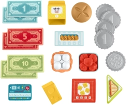 - Kase ar skeneri, 20 spēļu detaļas (banknotes, monētas, karte, pārtika)