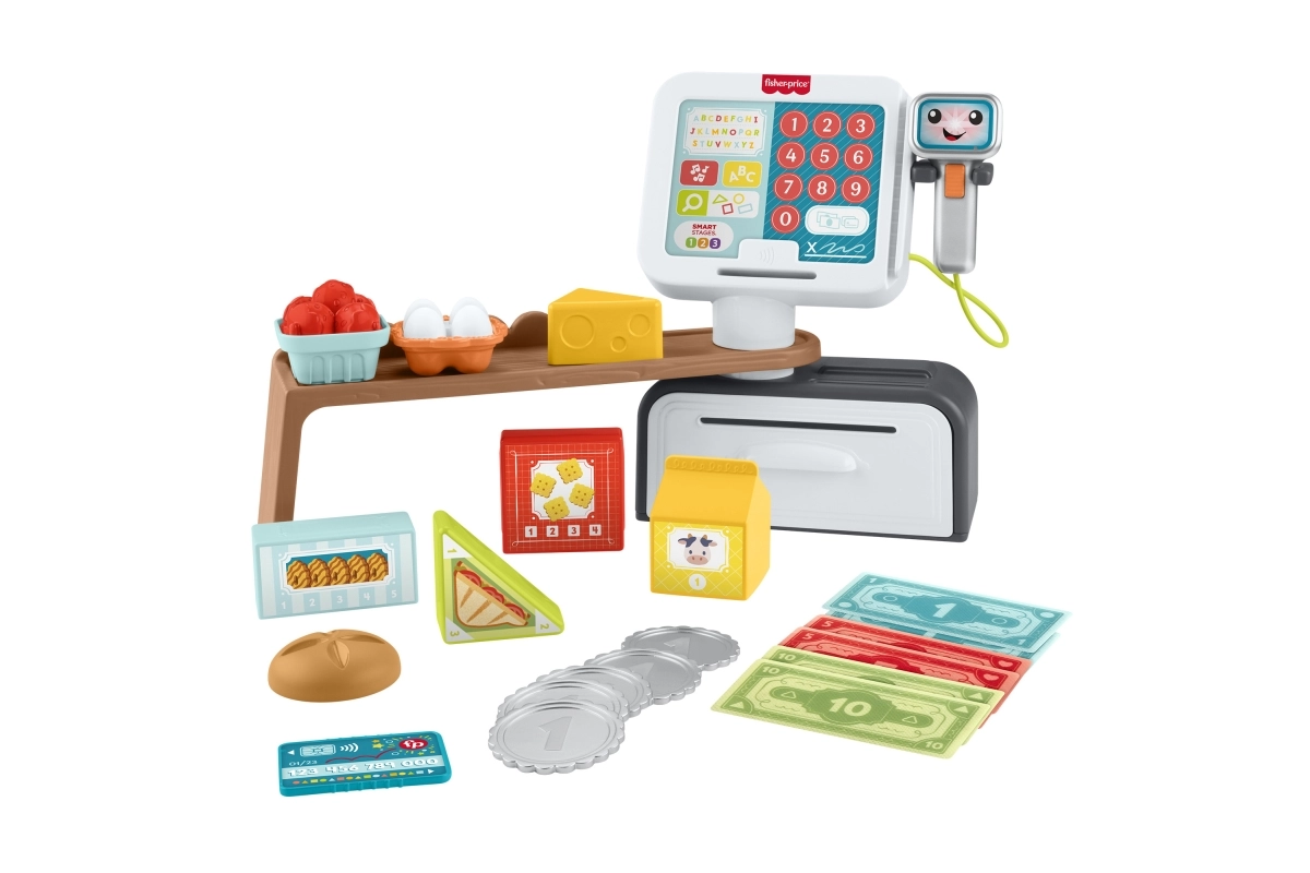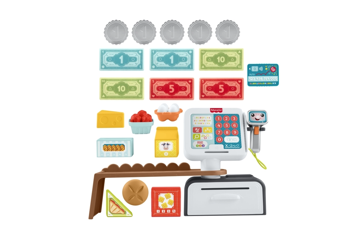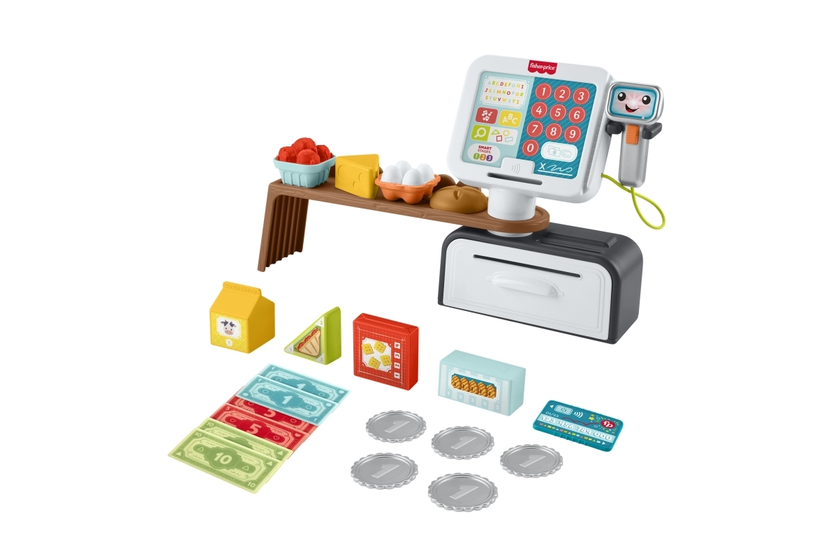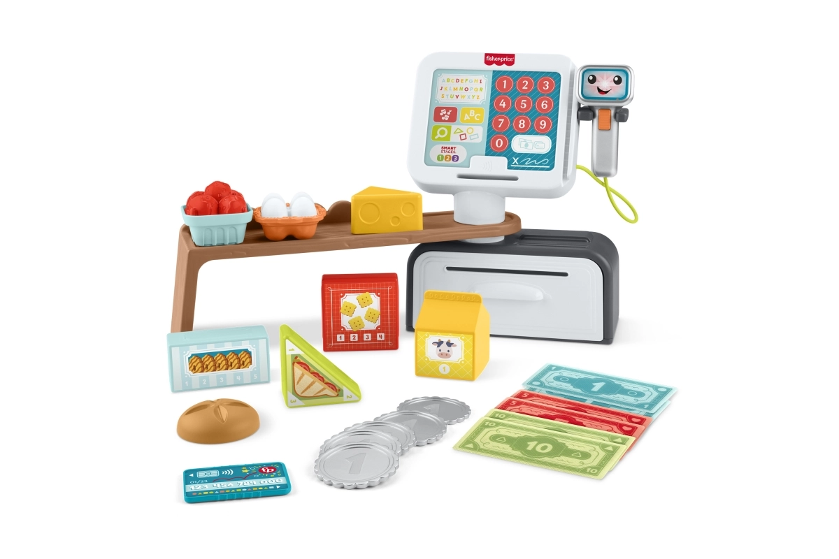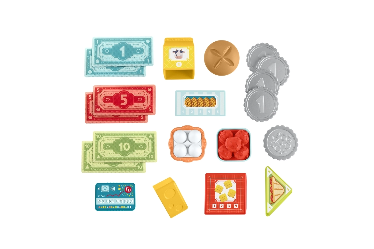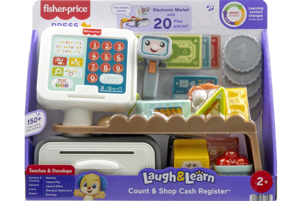 Runājošā Fisher‑Price kase pārvērš katru veikala spēli aizraujošā mācību piedzīvojumā. Bērni var skenēt pārtikas produktus, spiest lielas, krāsainas pogas, ielikt banknotes un monētas atvilktnē un maksāt ar karti. Bagātīga skaņas atgriezeniskā saite ar vairāk nekā 150 skaņām un frāzēm veicina dabisku mācīšanos un vārdu krājuma attīstību.