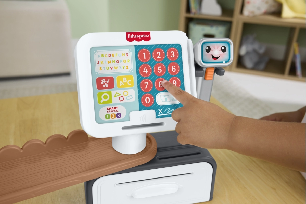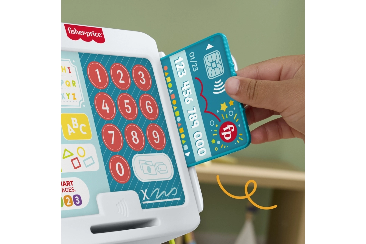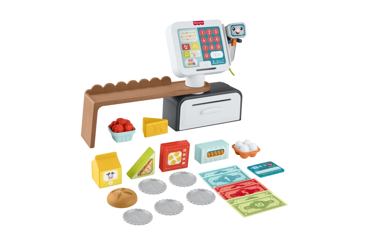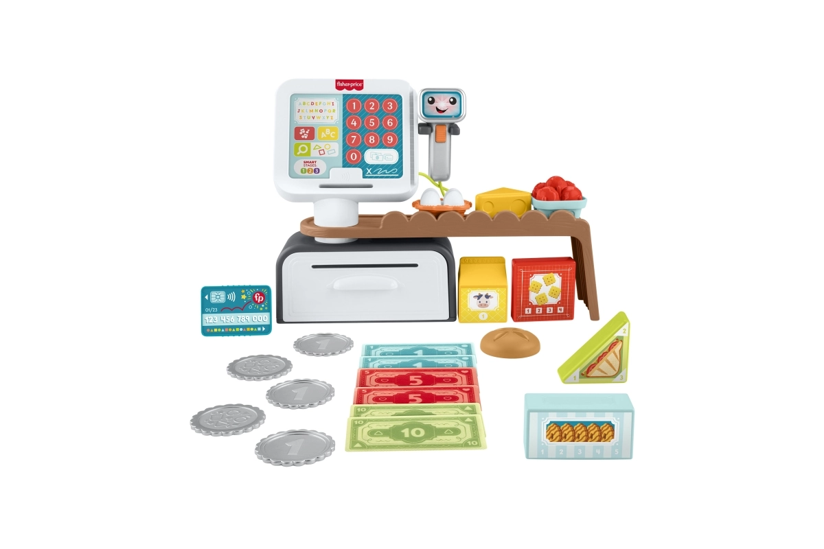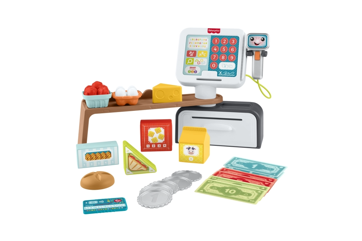 Runājošā Fisher‑Price kase pārvērš katru veikala spēli aizraujošā mācību piedzīvojumā. Bērni var skenēt pārtikas produktus, spiest lielas, krāsainas pogas, ielikt banknotes un monētas atvilktnē un maksāt ar karti. Bagātīga skaņas atgriezeniskā saite ar vairāk nekā 150 skaņām un frāzēm veicina dabisku mācīšanos un vārdu krājuma attīstību.