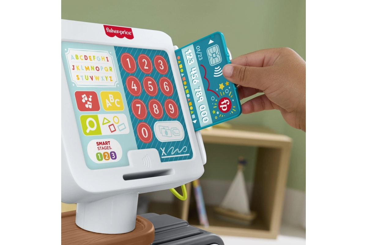 Pateicoties Smart Stages tehnoloģijai, varat izvēlēties no trim grūtības līmeņiem, kas aug līdz ar bērnu – no vienkāršas izpētes līdz attīstītākiem lomu spēles scenārijiem. Globusa poga ļauj ātri pārslēgt valodas (čehu, slovāku, angļu, ungāru, poļu), lai mazie pārdevēji apgūtu arī svešvalodu vārdiņus.