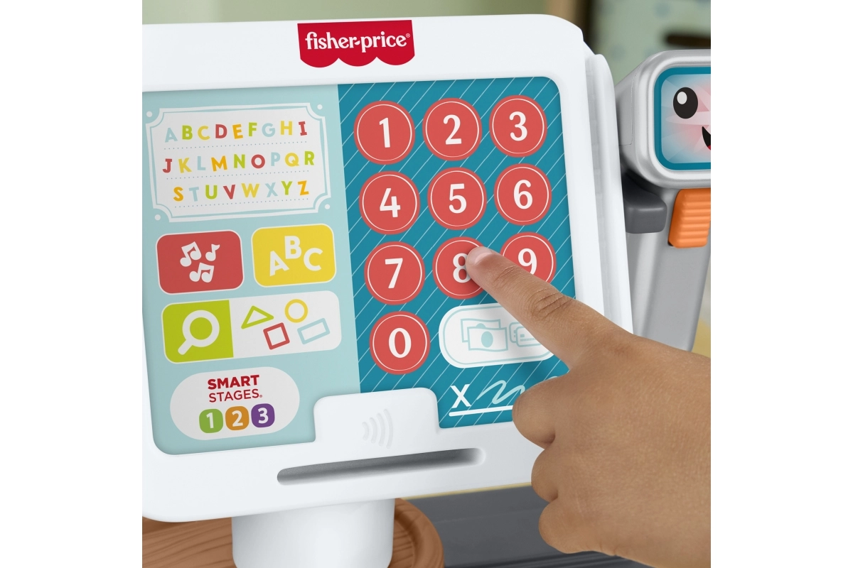 Atklājiet jautro runājošo Fisher‑Price kasi, kas bērniem no 2 gadu vecuma māca skaitļus, skaitīšanu, alfabētu, krāsas un formas. Ar 150+ dziesmām, skaņām un frāzēm, 15 pogām, smaidīgu skeneri un 20 piederumiem bērni trenējas pārdevēja un pircēja lomās. Trīs Smart Stages līmeņi pielāgojas vecumam un prasmēm, ir pieejams daudzvalodu režīms (CZ/SK/ENG/HU/PL), un baterijas ir iekļautas komplektā.