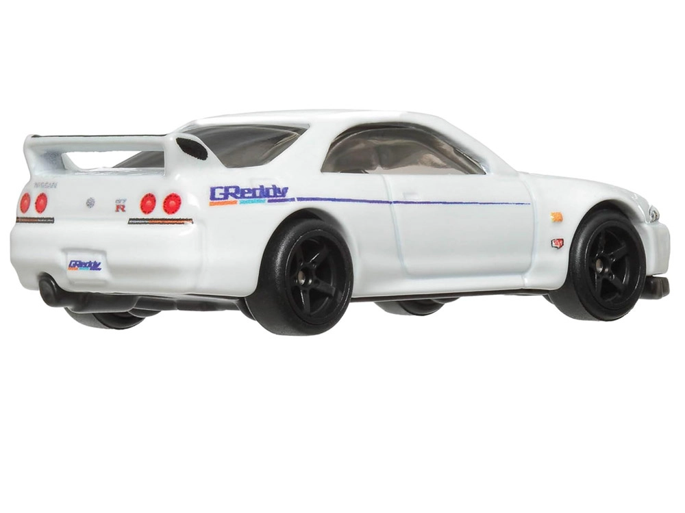 Autentiski dekorējumi, precīzi lukturi, reste, spoileris un sānu grafikas uzsver NISSAN SKYLINE GT‑R sportisko raksturu.