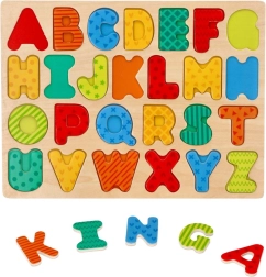 Izmēģiniet inovatīvās koka puzles Alfabēts, kas nodrošina interaktīvu veidu, kā iemācīt bērniem burtus un vienlaikus attīstīt viņu sīko motoriku: