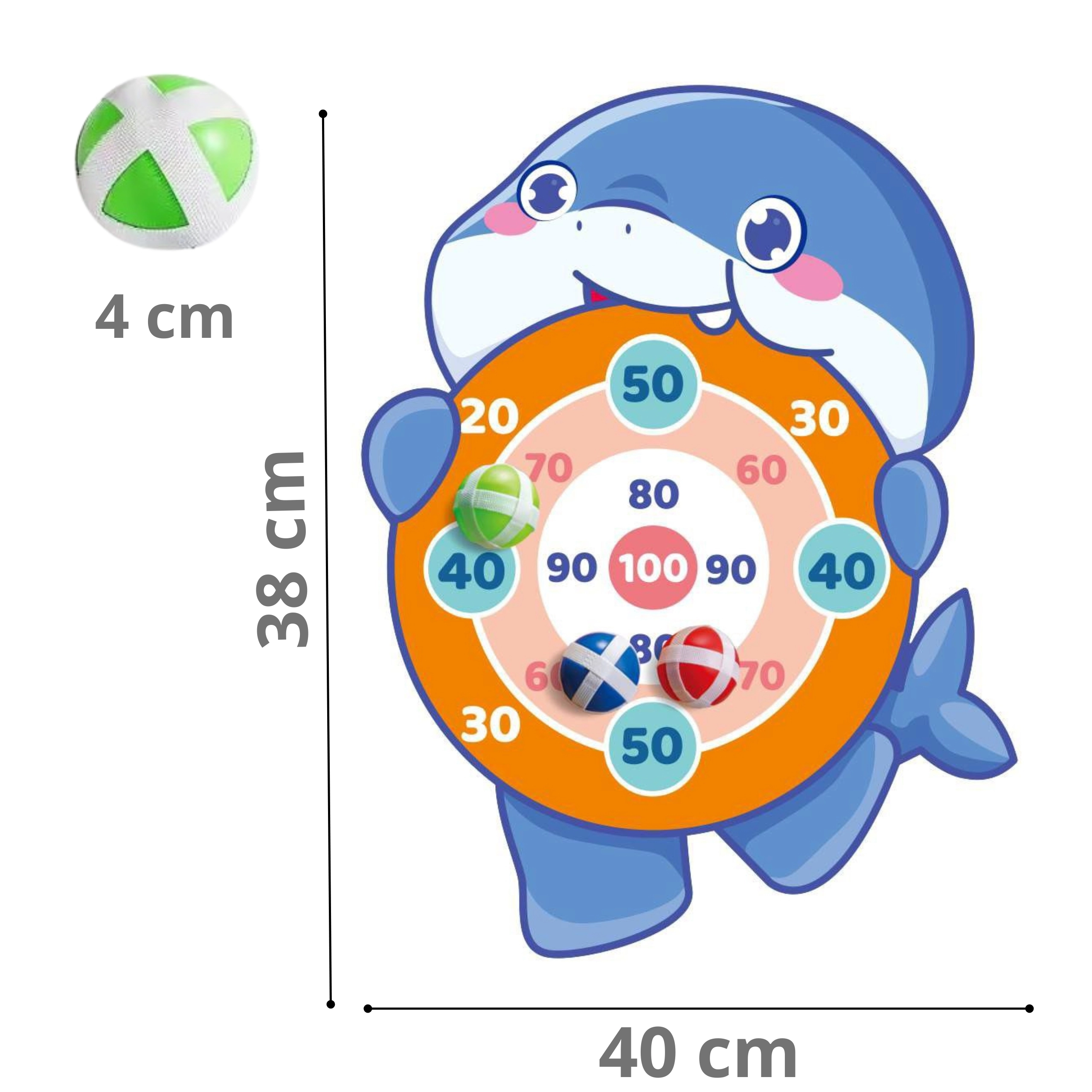 Ienirstiet aizraujošas izklaides pasaulē ar mīlīgās haizivs formas mērķi no zīmola Woopie! Šis košais un jautrais mērķis, ideāli piemērots pakāršanai pie sienas, nodrošinās stundām ilgu aktīvu izklaidi un vienlaikus attīstīs jūsu bērna precizitāti un koordināciju. Komplektā ir mīkstas bumbiņas, kuras, pateicoties līplentēm, viegli piestiprinās pie mērķa, kas atvieglo punktu skaitīšanu.