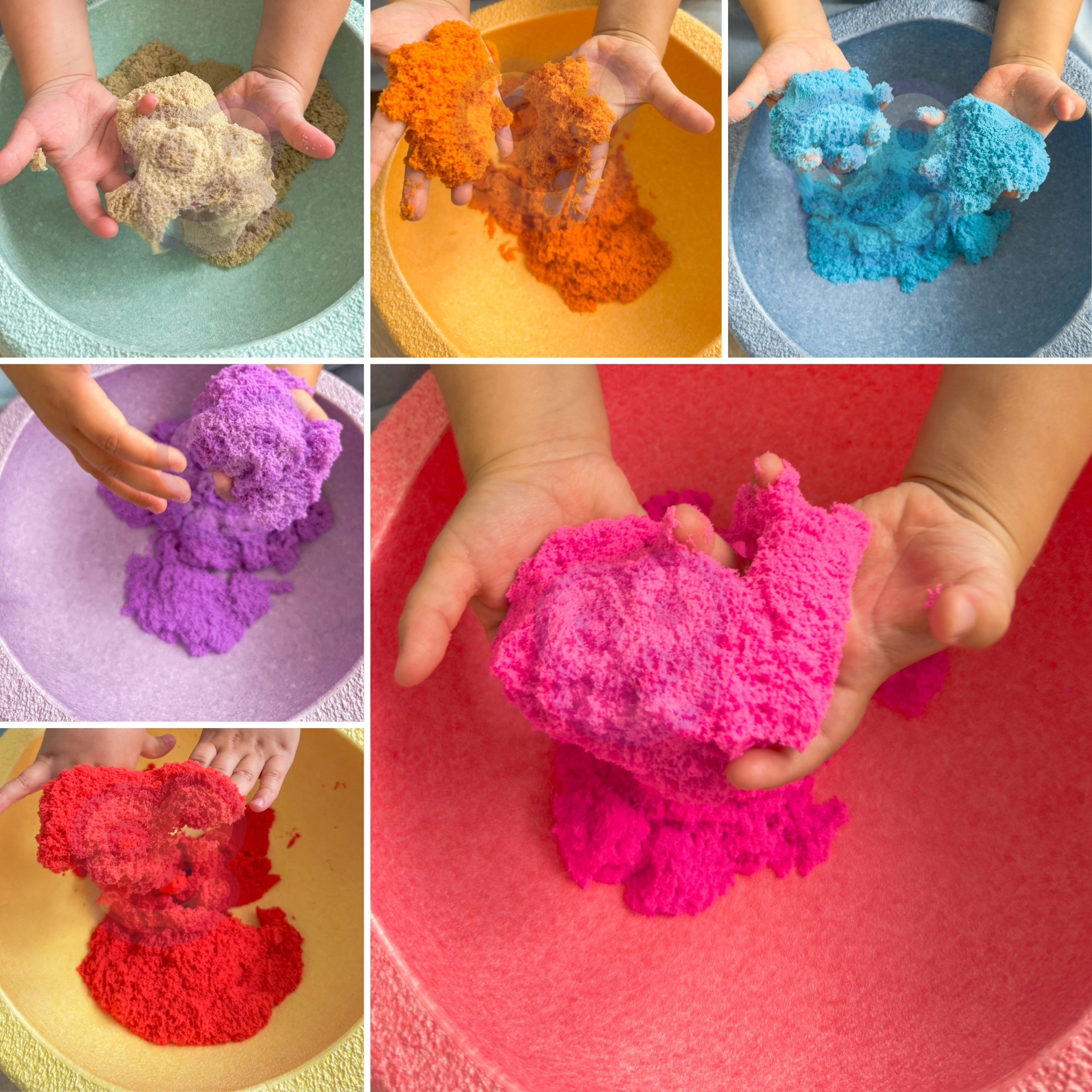- 6 krāsas, 1,2 kg kinētisko smilšu daudzveidīgai spēlei