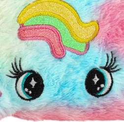 Dizains vienradža stilā ar varavīksnes rakstu un ausīm, ideāli piemērota kosmētikas piederumu glabāšanai.
