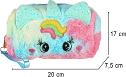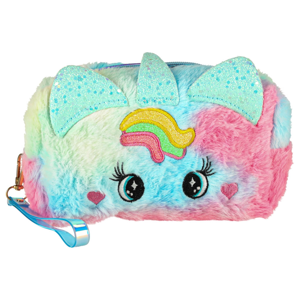 Kosmētikas somiņai ir mīlīgs dizains ar varavīksnes rakstu un unikālām ausīm, kas to padara par lielisku estētisku akcentu katrai mazajai princesītei.