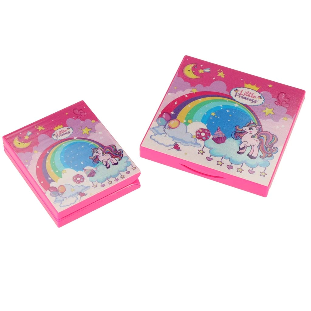 Unicorn grima komplekts bērniem ir ideāla dāvana visām mazajām princesēm, kuras vēlas atklāt skaistuma pasauli. Komplektā ir viss nepieciešamais, lai izveidotu savu unikālo stilu.
