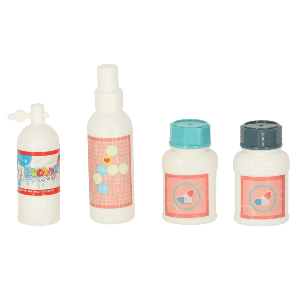 Komplektā ir plaša medicīnas instrumentu izvēle, kas bērniem ļauj simulēt profesionālas medicīniskās procedūras.