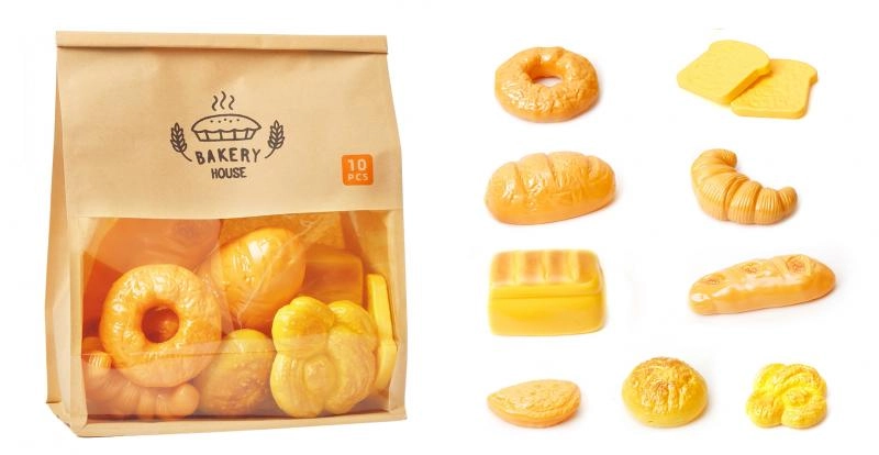 - Satur dažādus maizes izstrādājumu veidus, kas paplašina rotaļu iespējas.